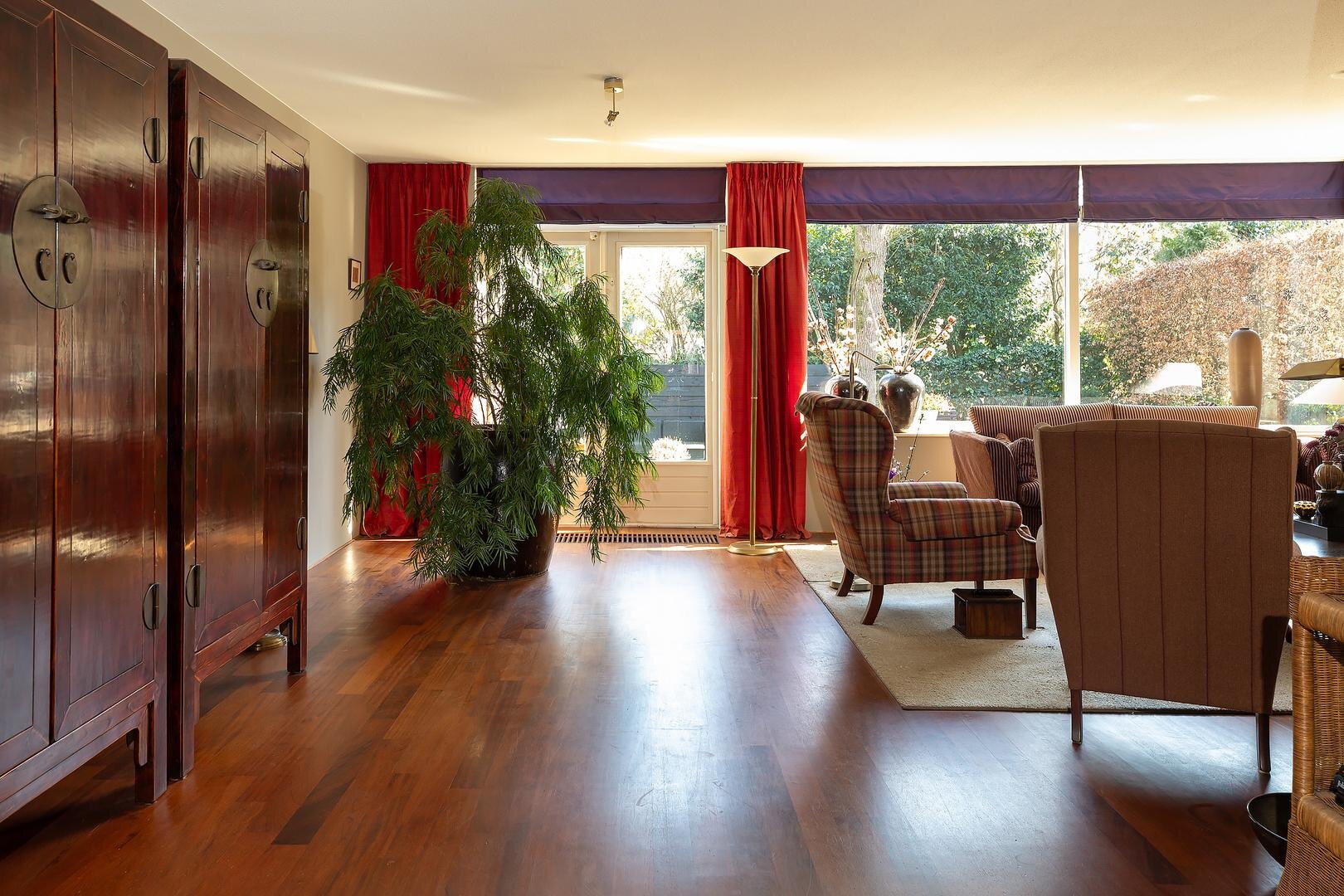 Via de entree komt u in de ruime hal met meterkast, trapopgang en modern toilet met fontein. De royale L-vormige woonkamer is voorzien van een fraaie parketvloer en een sfeervolle open haard. De openslaande deuren verbinden de woonkamer met de zonnige, vrij gelegen tuin waar u volop privacy geniet. Aan de voorzijde bevindt zich de moderne eetkeuken met diverse inbouwapparatuur en een prettig uitzicht over de rustige straat.