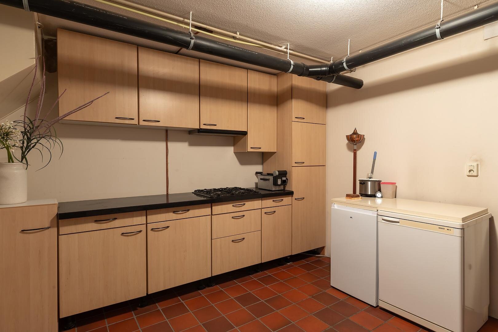 In het souterrain vindt u de praktische bijkeuken, de inpandige garage en extra bergruimte.