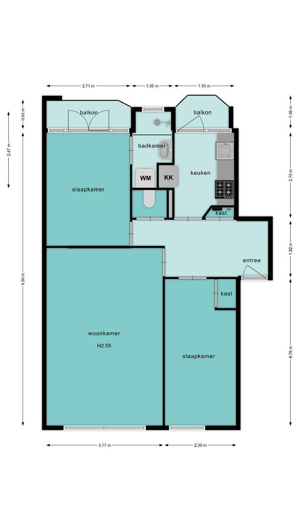Er zijn twee slaapkamers, waarvan de grootste toegang heeft tot zowel de badkamer als het balkon. De badkamer is verzorgd en uitgerust met een douche en wastafel, en de separate wc is vanuit de hal bereikbaar. Het balkon is een heerlijke plek voor een kop koffie in de ochtendzon of een relaxte avond met vrienden. Ook is vanuit de keuken een tweede kleiner balkon bereikbaar.