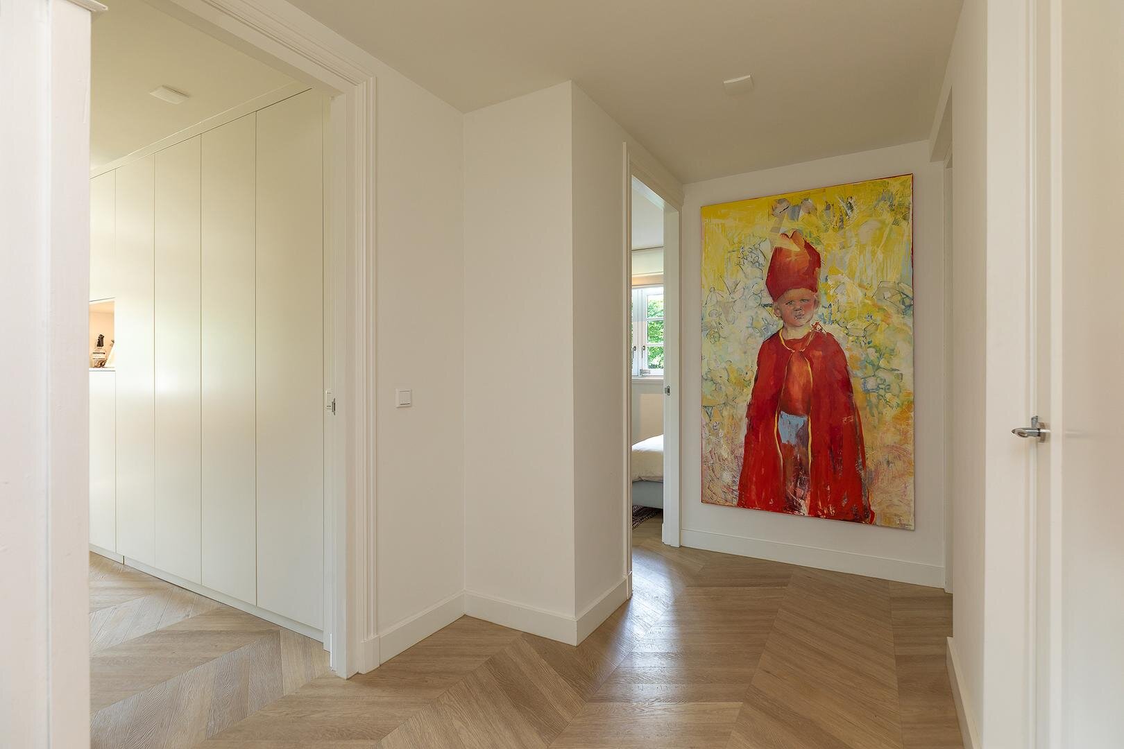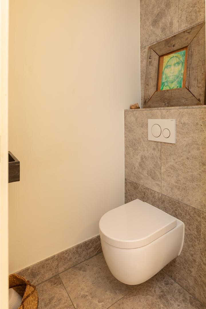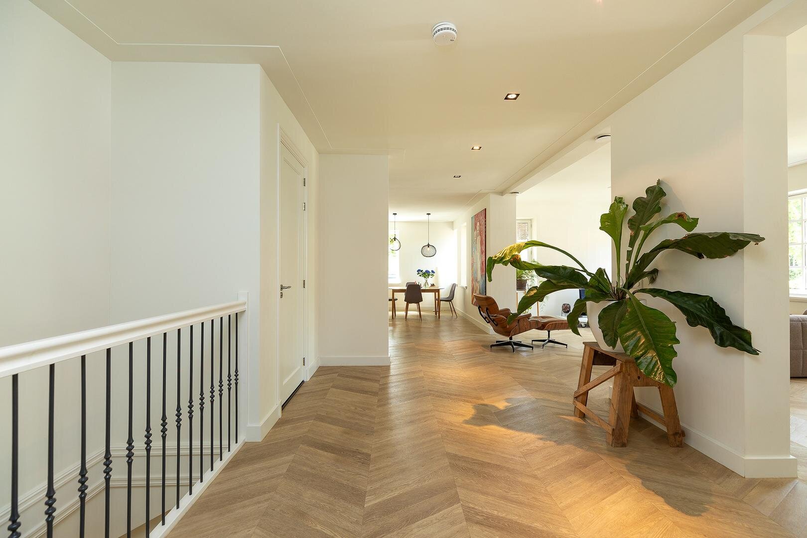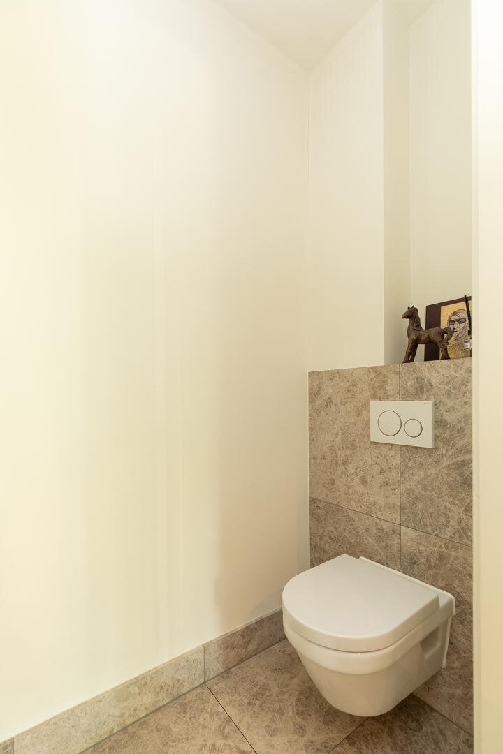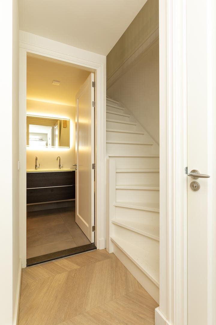 De bel-etage biedt een indrukwekkende, open leefruimte van ca. 80 m² met veel lichtinval van alle kanten. De moderne woonkeuken vormt het hart van het huis. Toilet met fontein. Beneden bevinden zich drie slaapkamers, twee badkamers, een apart toilet en een praktische was-/bergruimte. Alles is hoogwaardig afgewerkt met een pvc-vloer in ‘Hongaarse punt’, vloerverwarming en strak stucwerk.