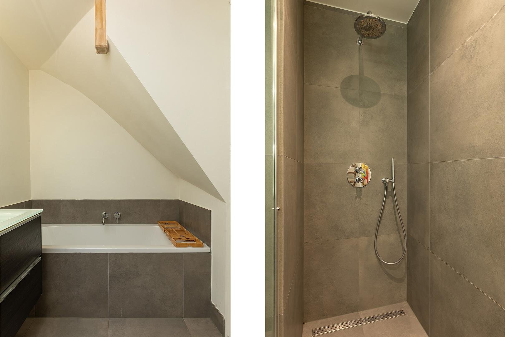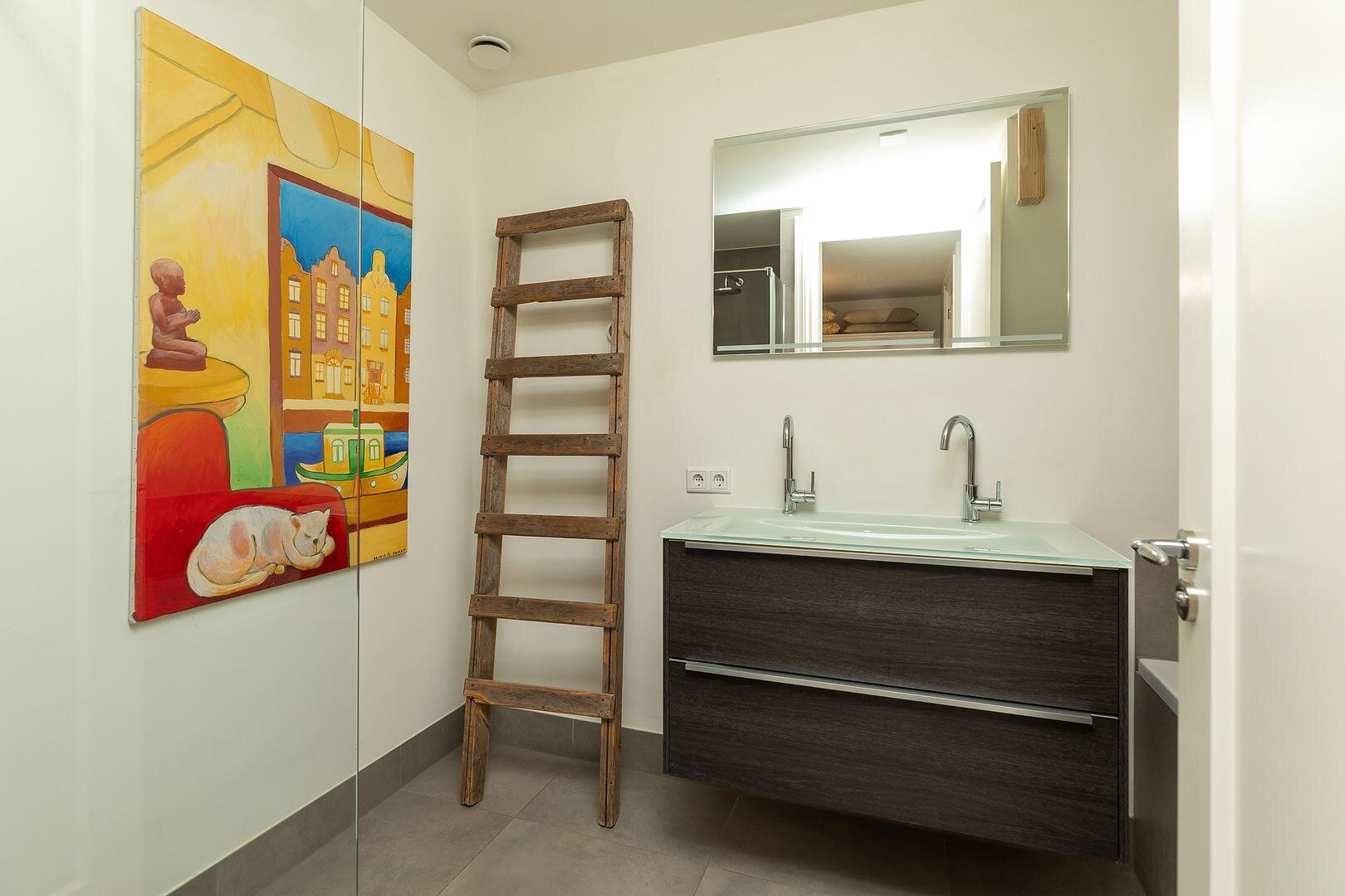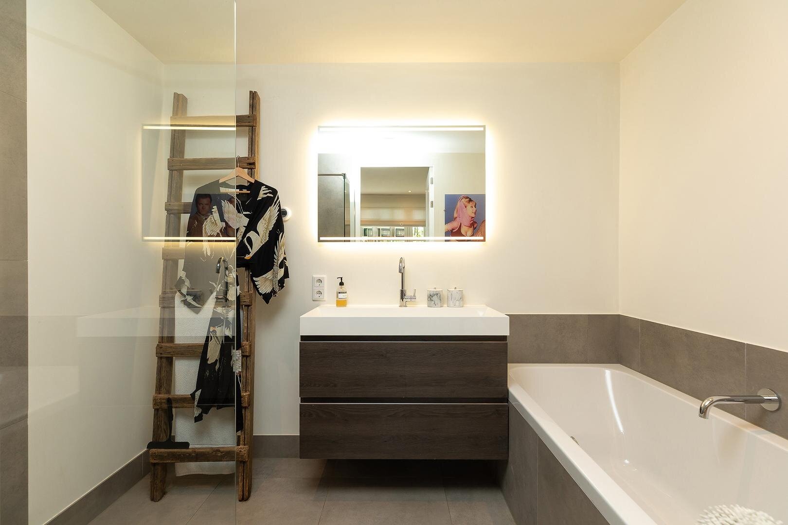 De bel-etage biedt een indrukwekkende, open leefruimte van ca. 80 m² met veel lichtinval van alle kanten. De moderne woonkeuken vormt het hart van het huis. Toilet met fontein. Beneden bevinden zich drie slaapkamers, twee badkamers, een apart toilet en een praktische was-/bergruimte. Alles is hoogwaardig afgewerkt met een pvc-vloer in ‘Hongaarse punt’, vloerverwarming en strak stucwerk.