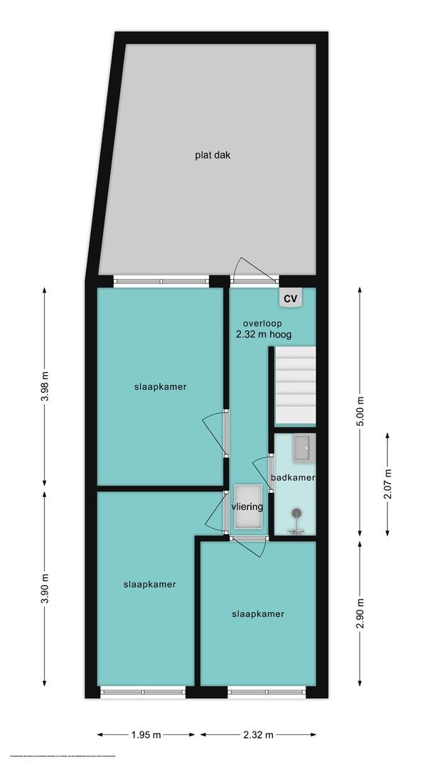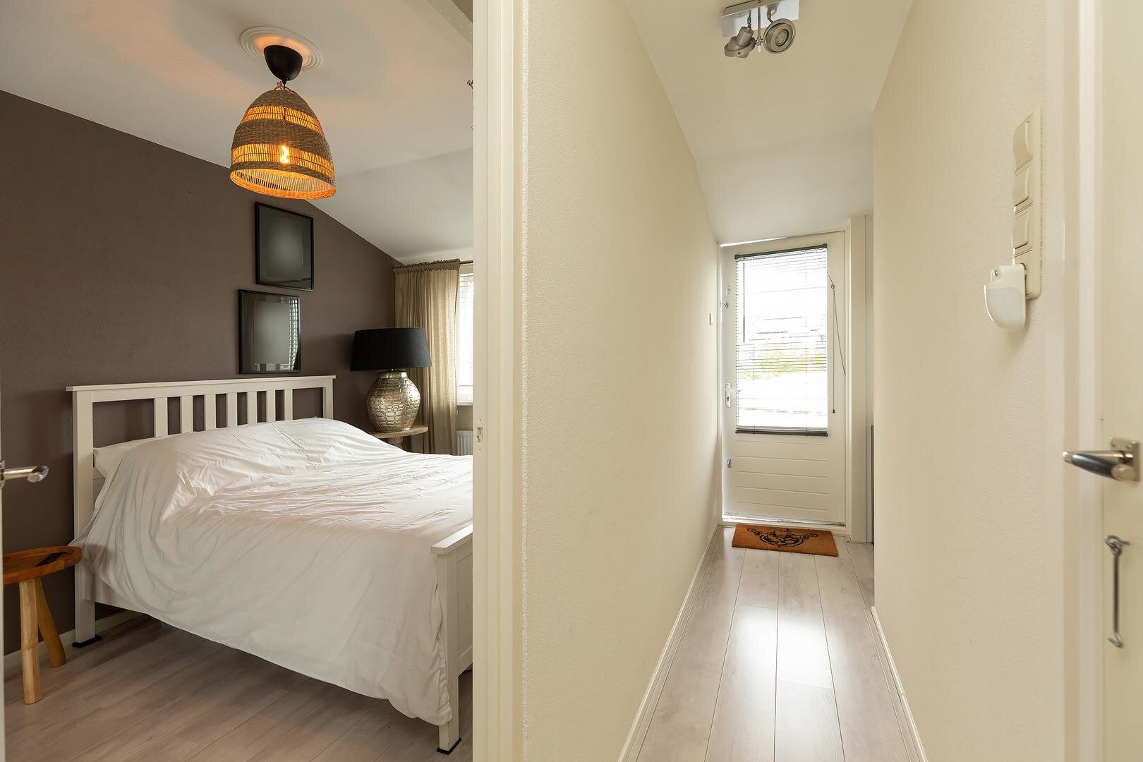 Op de eerste verdieping bereik je de via de centrale overloop alle slaapkamers en het potentiële dakterras. Er is een hoofdslaapkamer met voldoende kastruimte en een 2e en 3e goed bemeten slaapkamer, de badkamer is keurig onderhouden en is voorzien van een inloopdouche en wastafel.