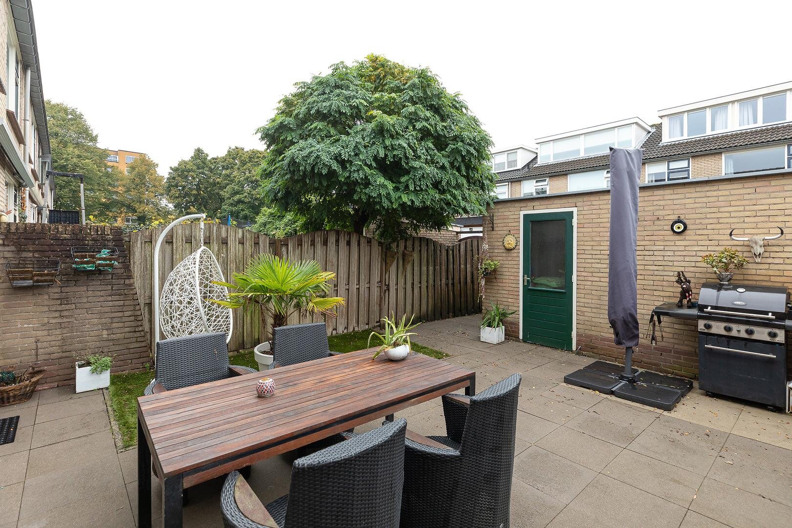 Indeling: Entree, hal, trapopgang, trapkast met meterkast, toilet met fonteintje. Ruime doorzonkamer met deur naar de achtertuin en deur naar de keuken voorzien van 5-pits gaskookplaat, afzuigkap, vaatwasser, koelkast, vriezer, magnetron, oven en volop kastruimte. Middels achterdeur toegang tot de zonnige tuin voorzien van achterom en stenen berging.