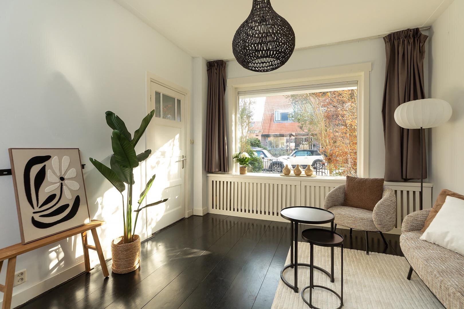 De woning is gelegen in een charmante en populaire woonstraat in Hilversum, waar rust en levendigheid mooi samenkomen. In de directe omgeving vind je diverse voorzieningen zoals winkels, scholen en sportfaciliteiten. Ook het station, het centrum van Hilversum en verschillende natuurgebieden liggen op korte afstand. Dankzij de gunstige ligging zijn ook uitvalswegen richting Amsterdam en Utrecht goed bereikbaar. Een ideale plek voor wie rustig wil wonen met alles dichtbij.