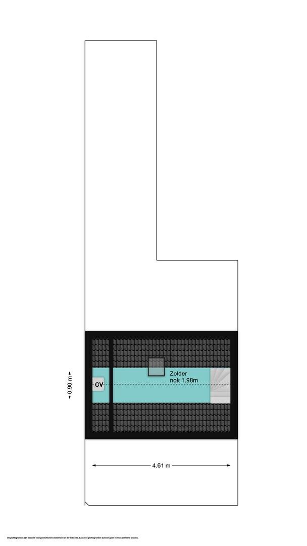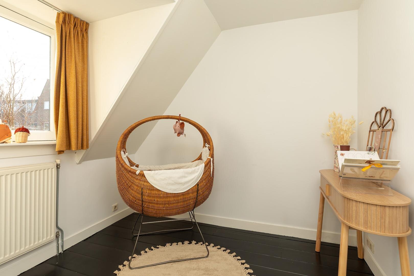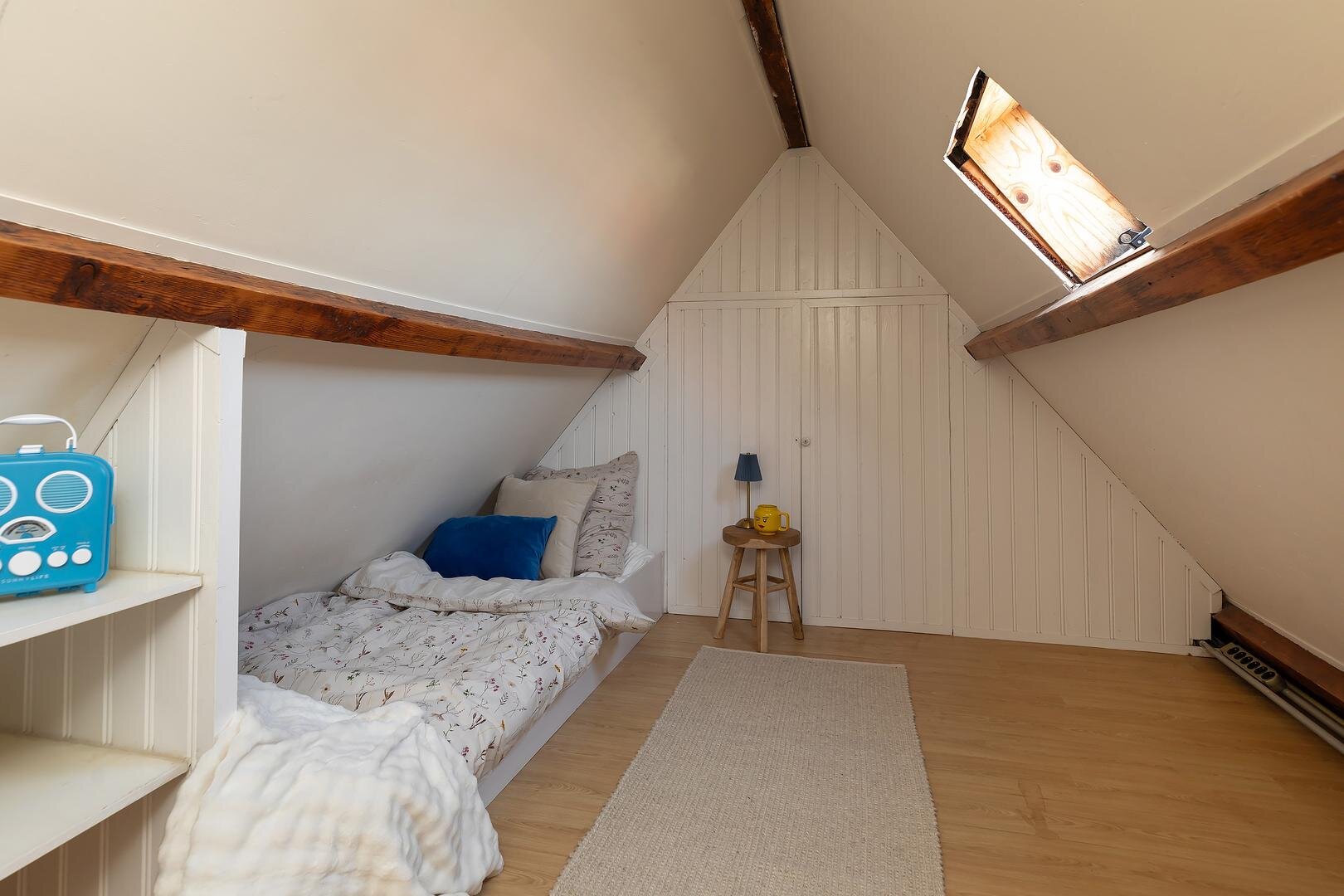 Via een vaste trap bereik je de zolderverdieping met dakraam. Door de hoogte van 1,98 m telt deze ruimte officieel niet mee als woonoppervlak, maar in de praktijk is dit een extra (kinder/werk)kamer die momenteel wordt gebruikt als slaapkamer. Ook bevindt zich hier de cv-opstelling.