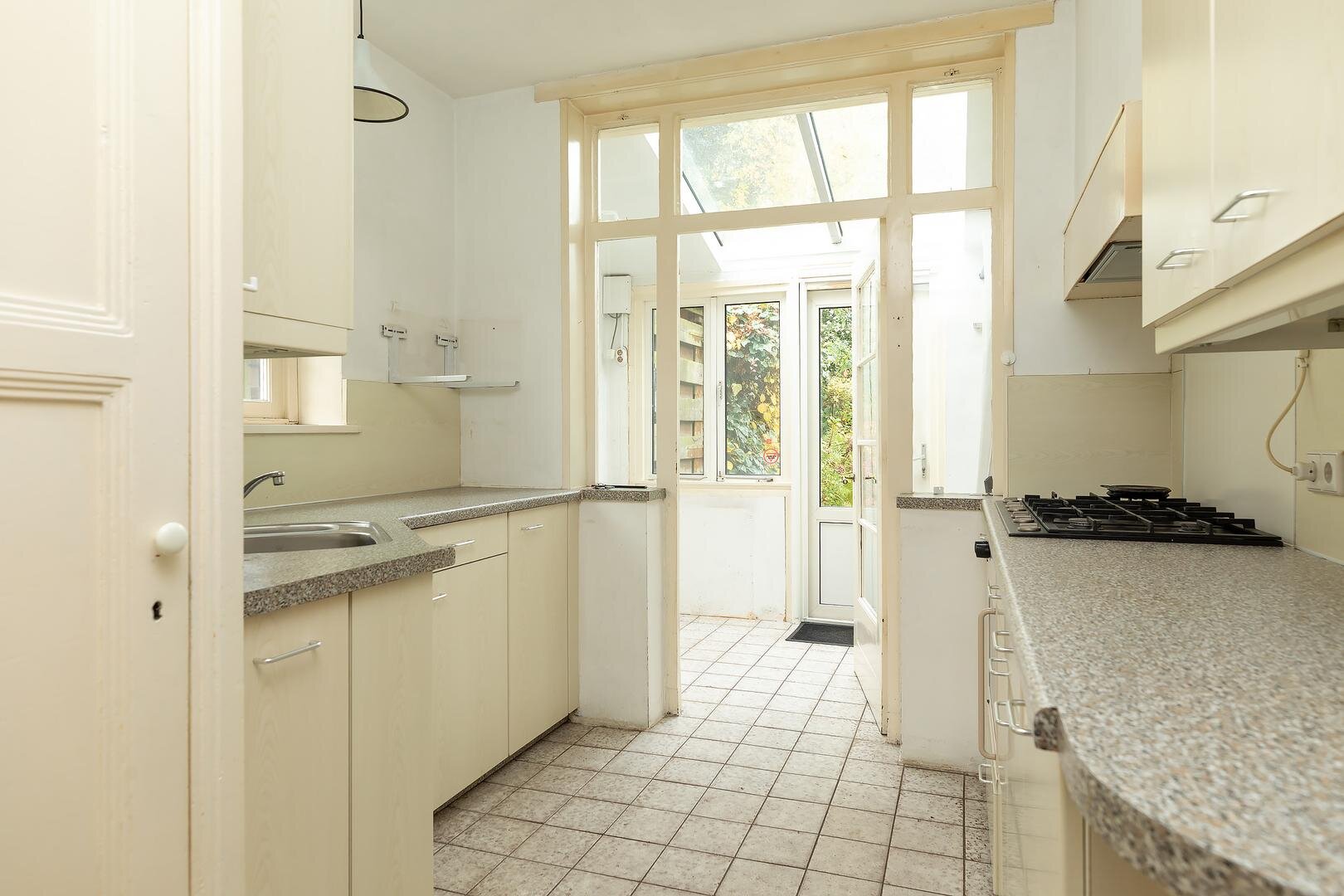 Eenvoudige maar functionele keuken aan de achterzijde met toegang tot de bijkeuken. Vanuit de bijkeuken stap je direct de vrij gelegen tuin in. Het parkeren doe je op eigen terrein op de oprit en onder de carport.