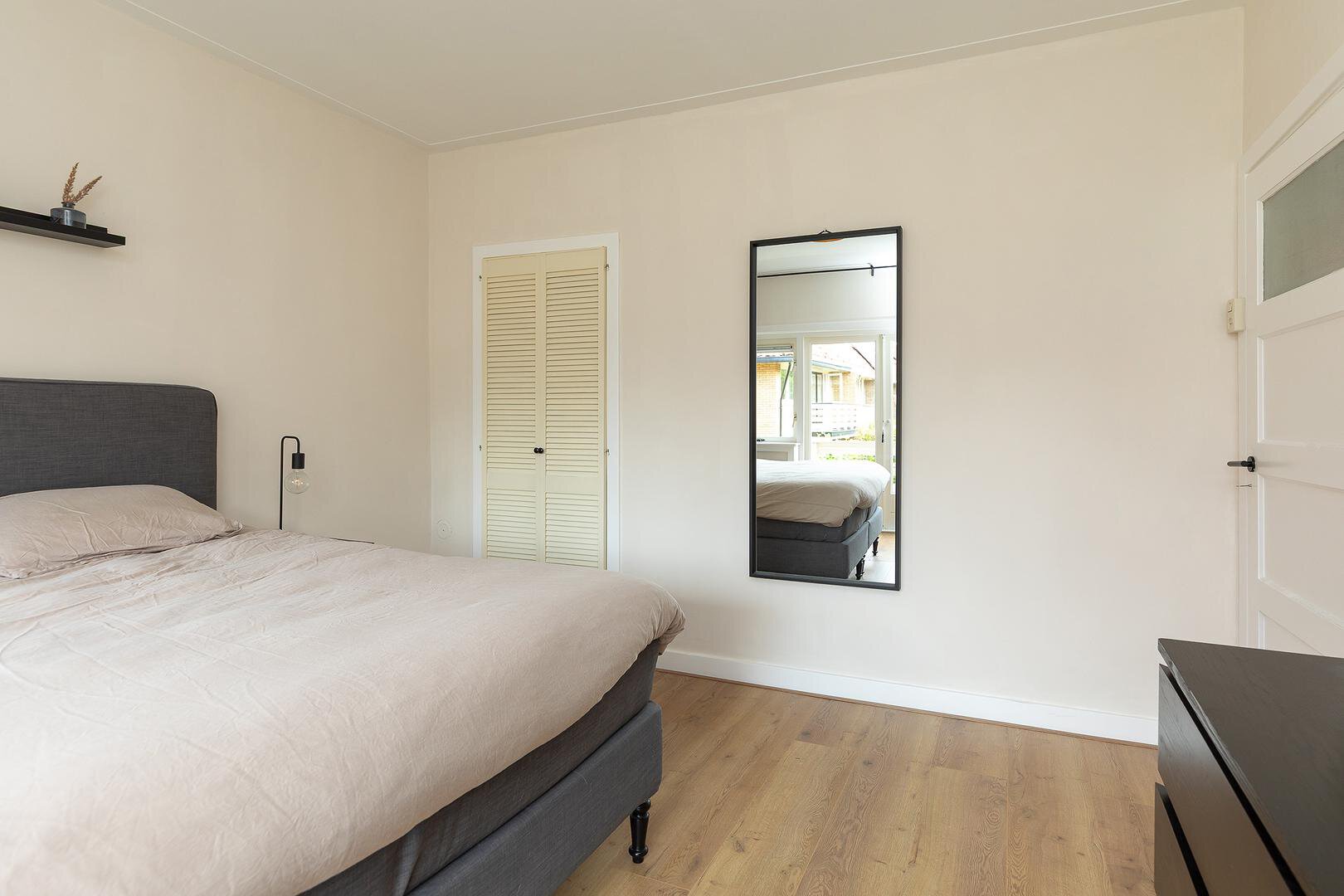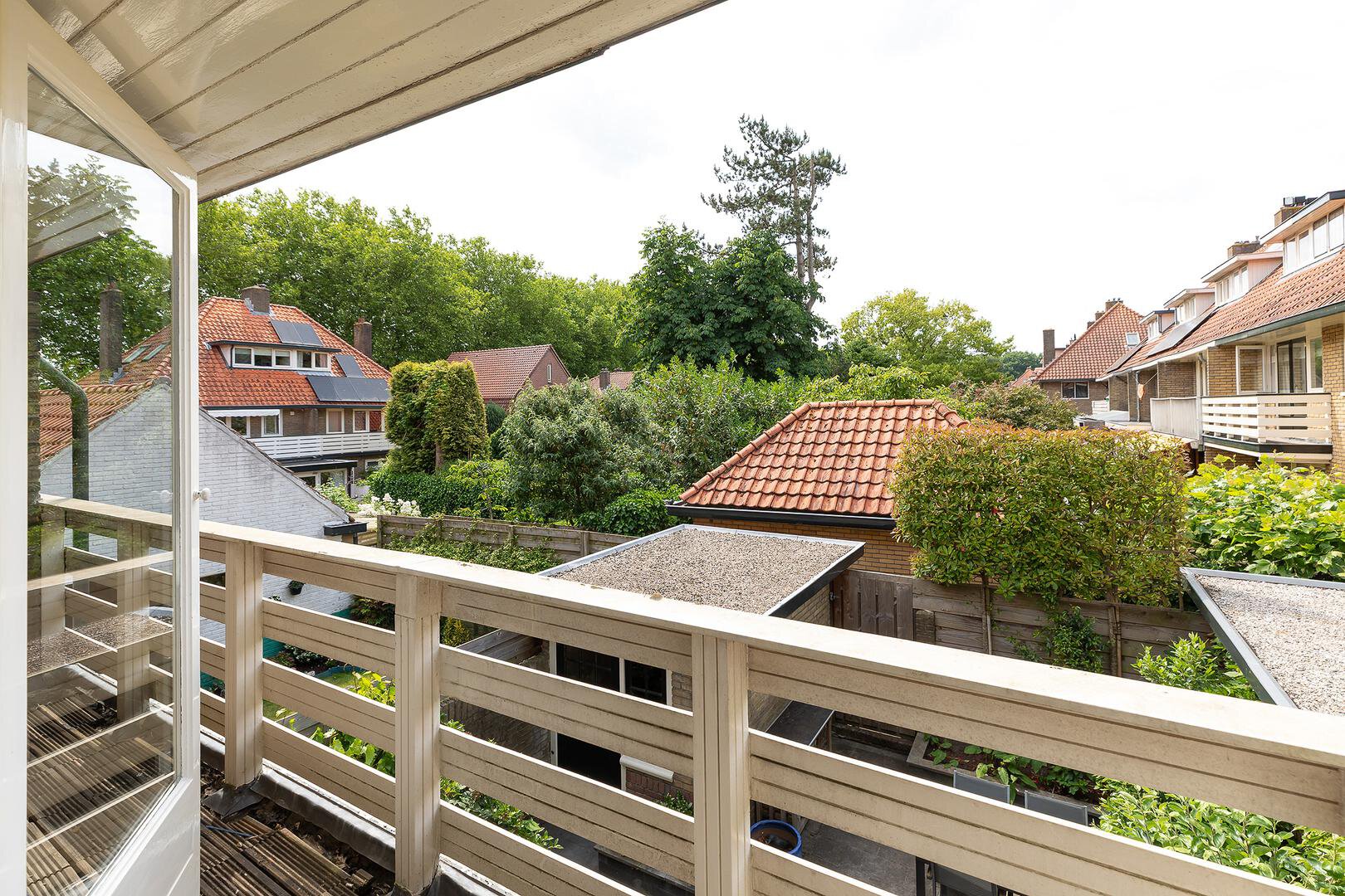 Op de eerste verdieping treft u twee ruime slaapkamers met vaste kasten. De slaapkamer aan de achterzijde biedt toegang tot een zonnig balkon met uitzicht op de tuin. De derde kamer is ideaal als kinderkamer, werkkamer of kleedruimte. De ruime en complete badkamer is voorzien van een ligbad, aparte douche, wastafelmeubel en tweede toilet.