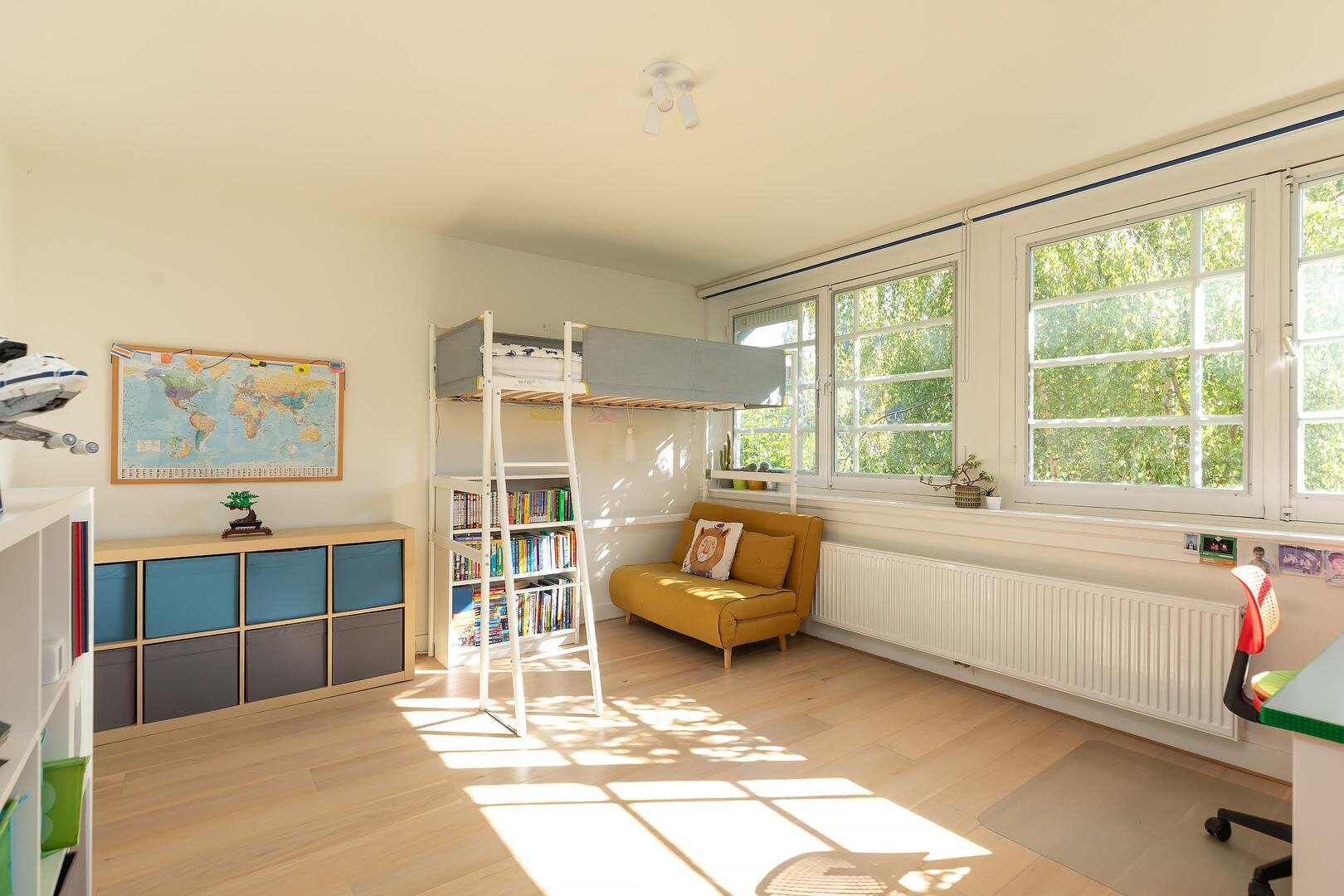 Het huis heeft een zonnige achtertuin en is gelegen in een kindvriendelijke, rustige straat met speeltuin en grasveld direct aan de overzijde. De woning is gelegen op enkele minuten fietsen van winkelcentrum Seinhorst en de heide. Ook het gezellige centrum van Hilversum met NS-station, winkels, terrasjes, het mooie marktplein en leuke restaurants, is eenvoudig bereikbaar. Goede (internationale) scholen liggen in de directe nabijheid en via de A1 en A27 bereik je in twintig autominuten het centrum van Amsterdam, Utrecht en Amersfoort.