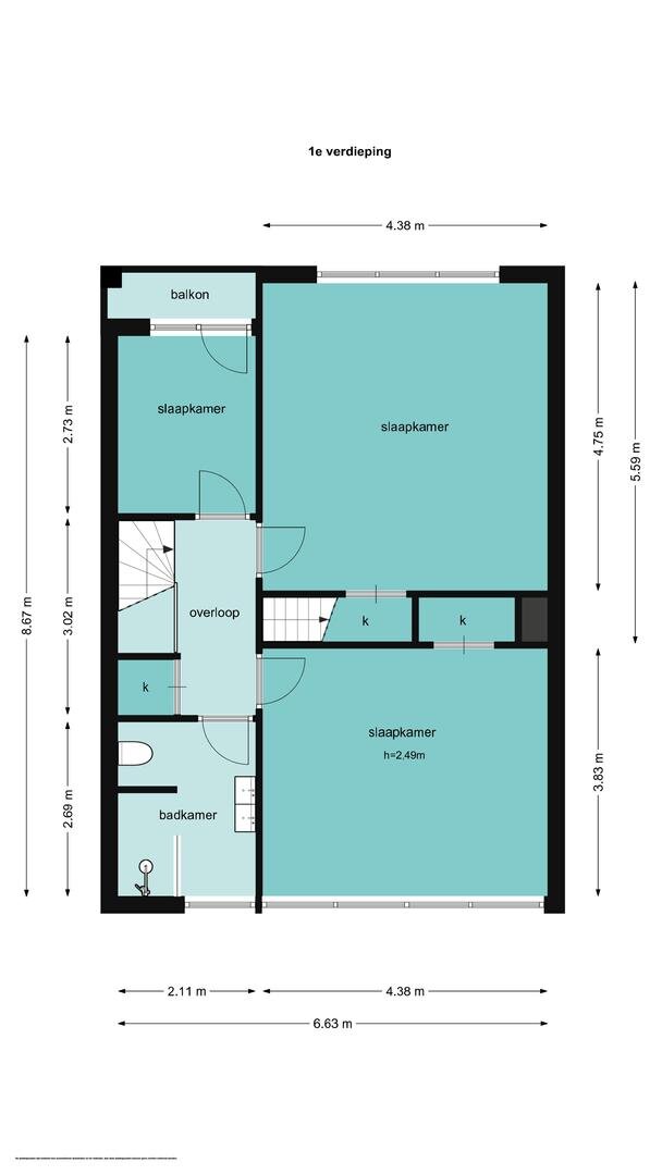 Eerste verdieping met overloop en grote vaste linnenkast, 1e ruime hoofdslaapkamer aan de achterzijde, 2e riante slaapkamer aan de voorzijde met brede raampartijen en zicht op het Cuypersplein, 3e kleinere slaapkamer met deur naar het overdekte balkon, badkamer met ruime inloop-regendouche, dubbel wastafelmeubel en modern 2e toilet.