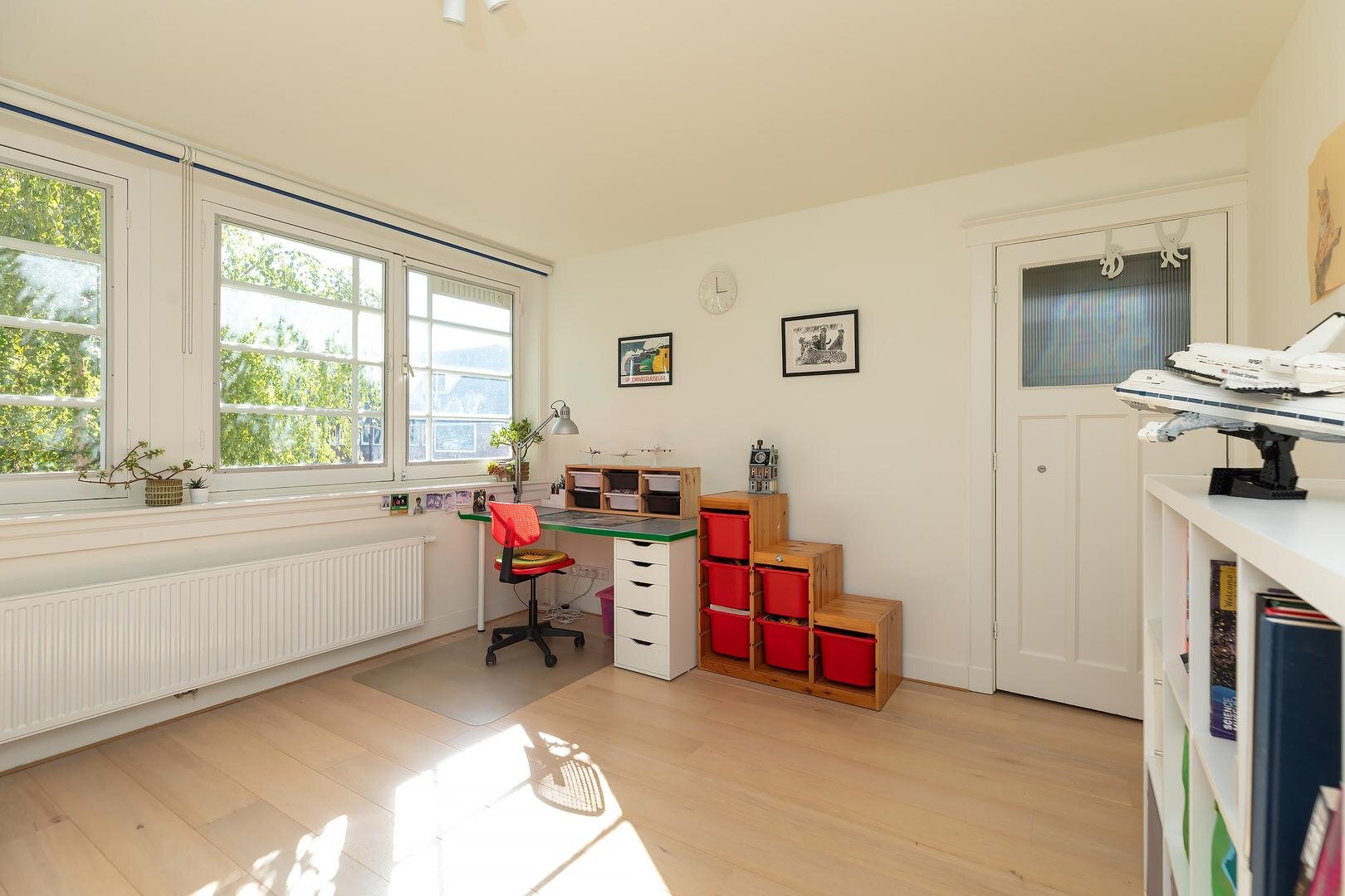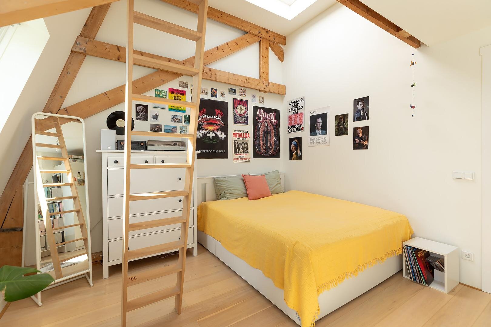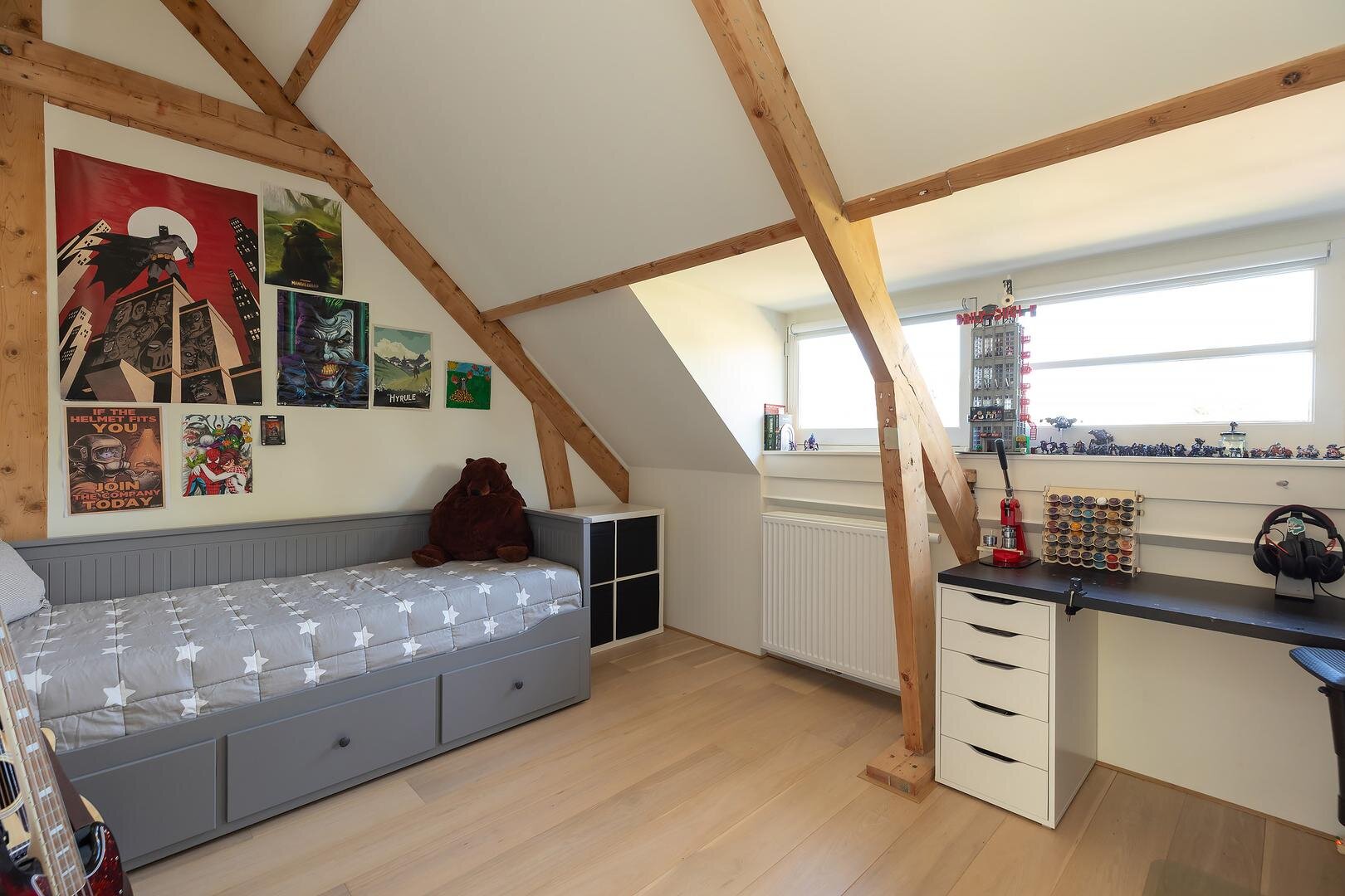 Tweede verdieping met overloop, 2e badkamer met ligbad, inloopdouche, wasmeubel en 3e toilet, 4e riante slaapkamer aan de achterzijde met een originele dakkapel, 5e riante slaapkamer met een leuke slaap- ‘chill- en-game’ vide en twee moderne Veluxramen, 6e kleinere slaapkamer. Deze etage is volledig voorzien van dakisolatie en eiken lamellen parketdelen.