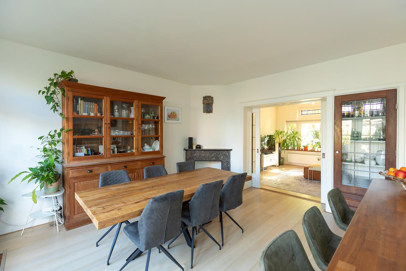 Monumentaal gezinshuis met zes slaapkamers, twee badkamers en een mooi aangelegde en verzorgde zonnige achtertuin in een gezellige straat in Hilversum.