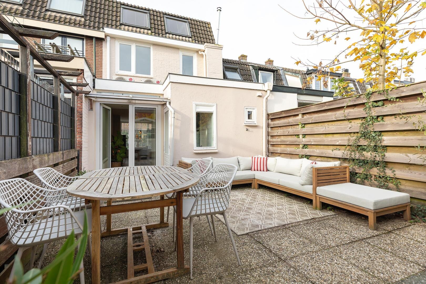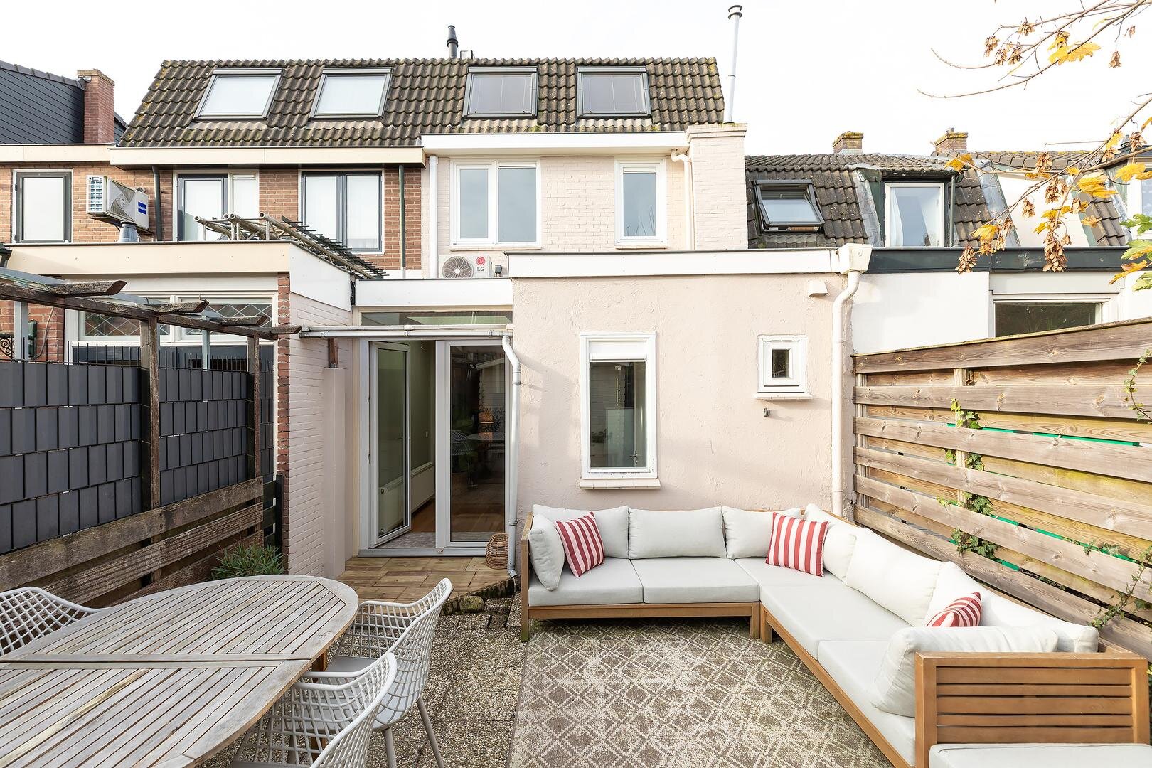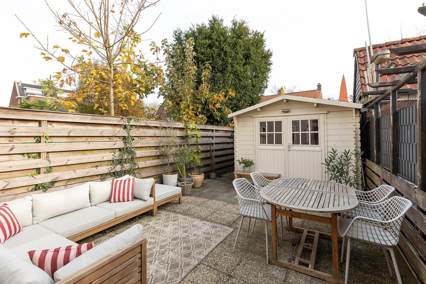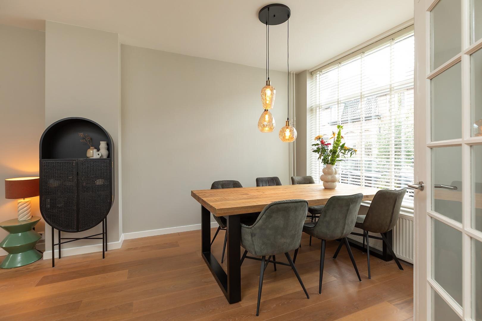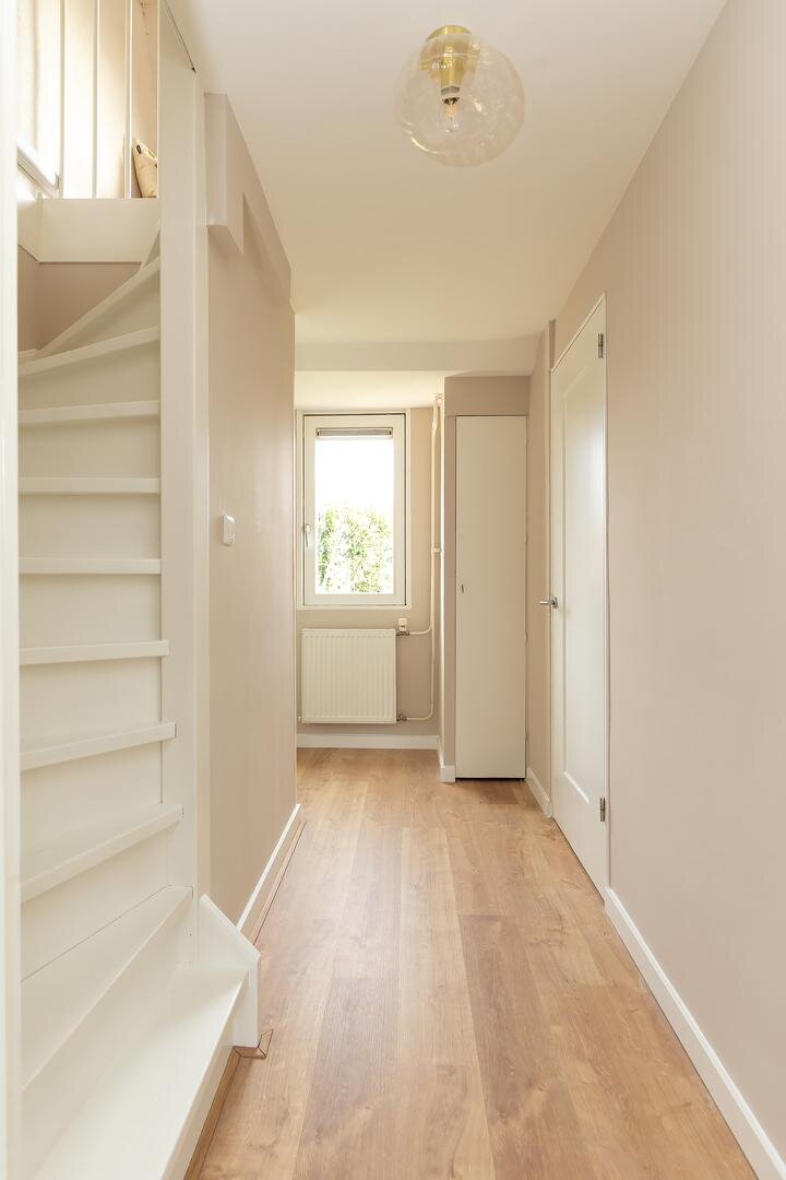 Via de voordeur stap je binnen in een hal die toegang geeft tot de lichte en sfeervolle woon- en eetkamer. De halfopen keuken is modern en smaakvol afgewerkt, voorzien van luxe inbouwapparatuur en biedt volop bergruimte. Vanuit de keuken zijn zowel de kelder als het moderne toilet met wastafel bereikbaar. De openslaande deuren leiden naar de onderhoudsvriendelijke en zonnige achtertuin, met ruimte voor een eettafel en loungehoek. Achterin de tuin met een achterom staat een praktische schuur voor fietsen en tuingereedschap.