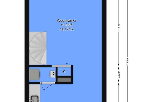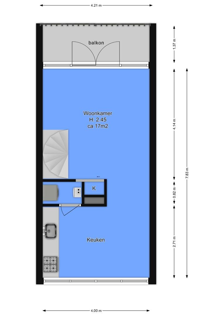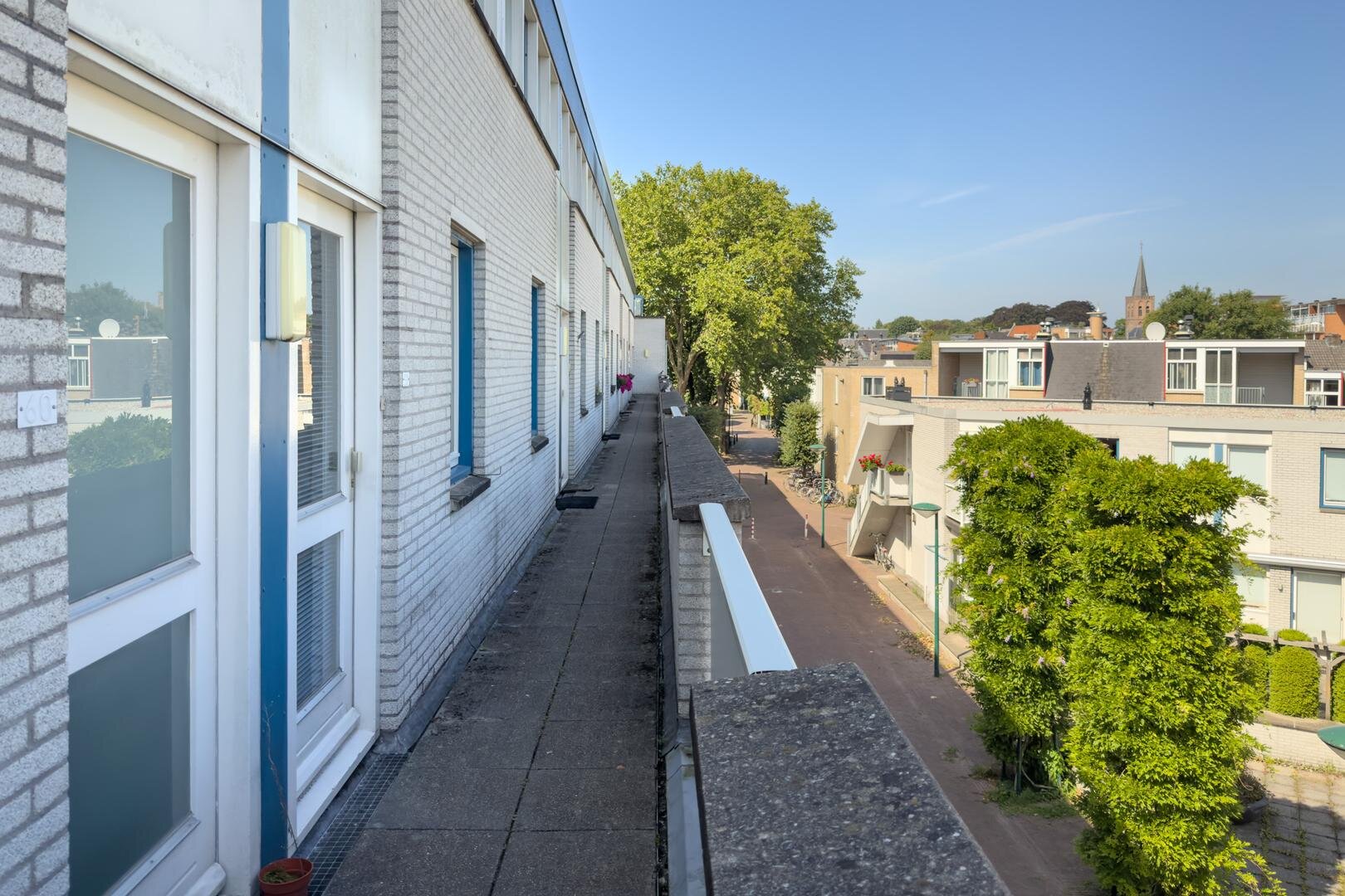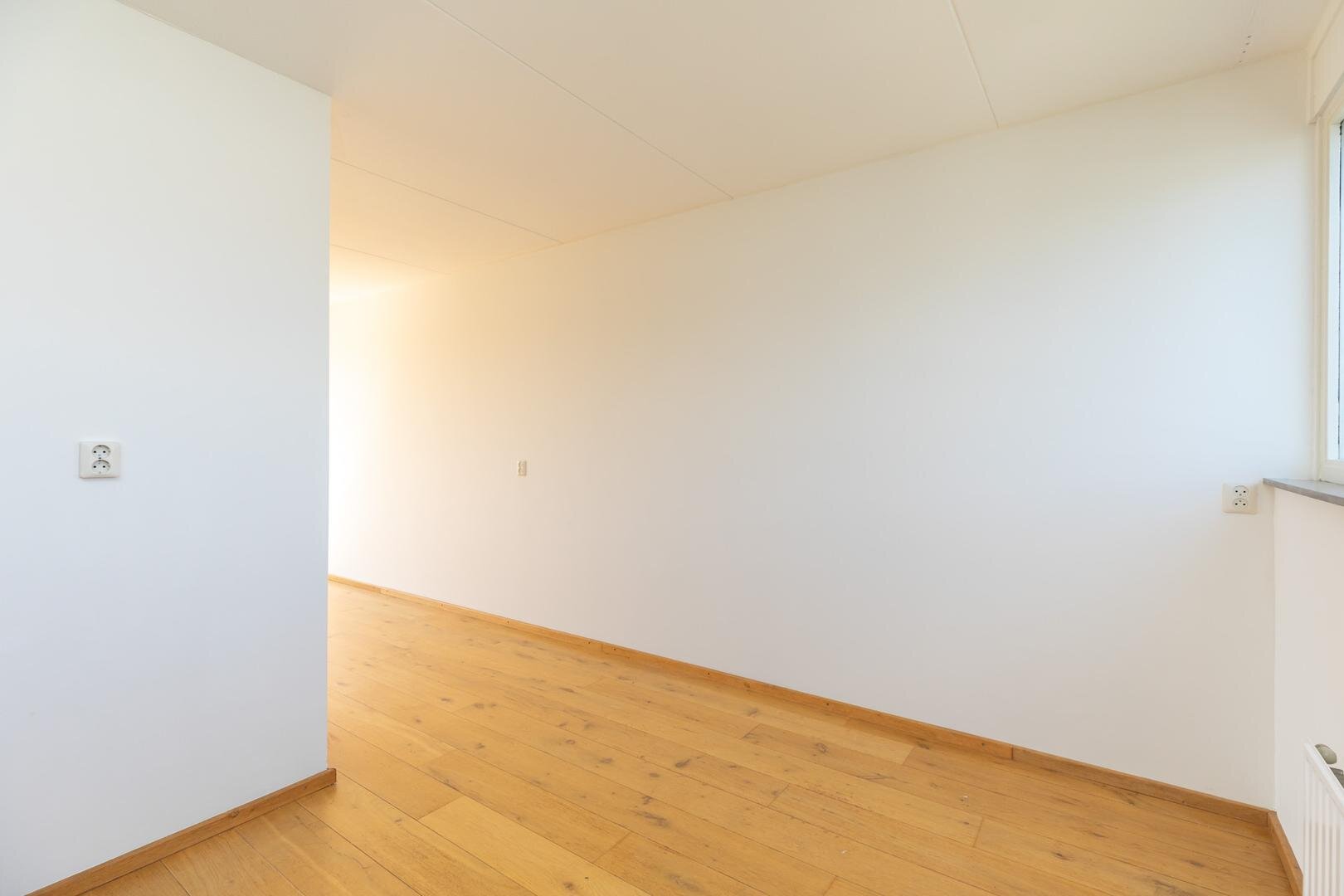 Verdieping: middels wenteltrap naar lichte woonkamer voorzien van houten vloerdelen en vaste kast. Openslaande deuren naar het zonnige balkon over de volle breedte met vrij uitzicht en gelegen op het zuiden. Moderne keuken voorzien van gaskookplaat, combi oven/magnetron, koelkast en vaatwasser, bergkast met c.v. opstelling en wasmachine aansluiting.