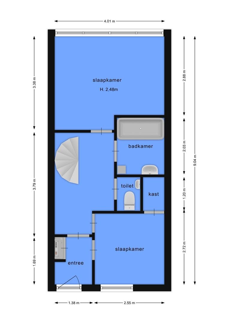 Indeling: vestibule met meterkast, centrale hal, toilet, vernieuwde badkamer met douche en vaste wastafel, twee in grootte variërende slaapkamers met vaste kast.
