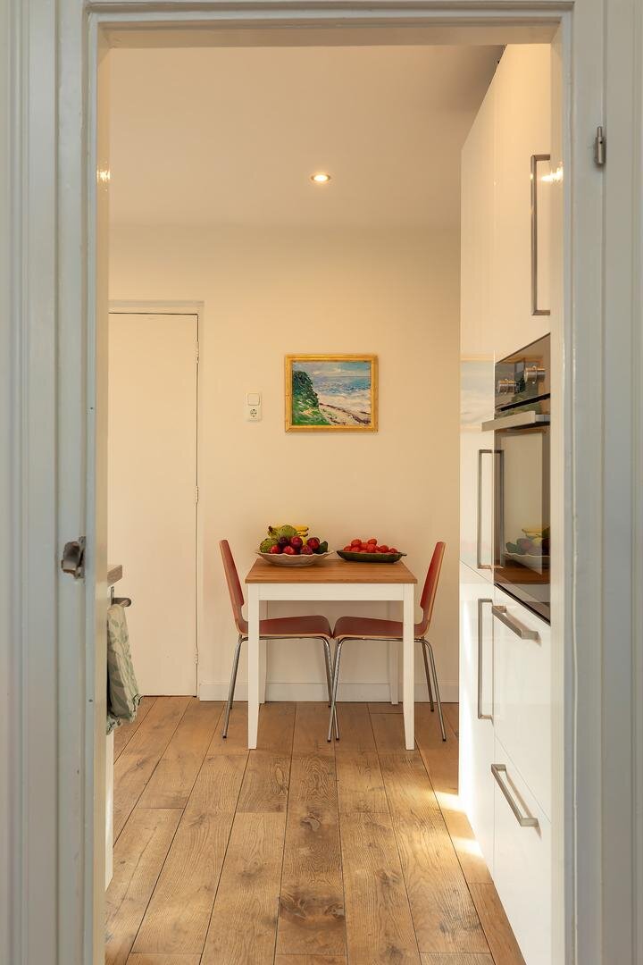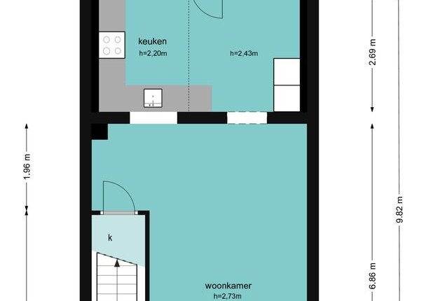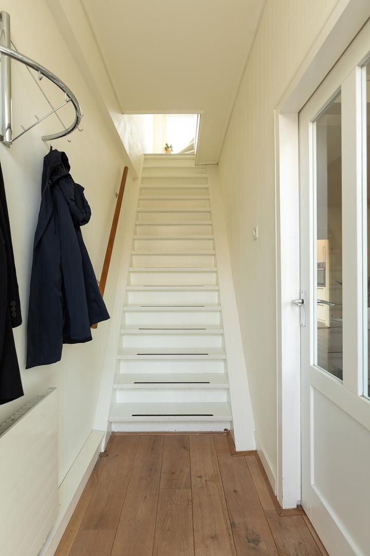 Indeling: entree / hal, meterkast (11 groepen+3 aardlek) en trapopgang. Lichte woon- / eetkamer met glad stucwerk, en een fraaie houten vloer (net als in de hal), met toegang tot de trapkast. Semi open, uitgebouwde keuken aan de achterzijde in L-opstelling voorzien van graniet blad, inbouwapparatuur en achterdeur naar het plaatsje aan de achterzijde. Vanuit de keuken tevens toegang tot tussenhalletje met deur naar toilet en deur naar de bijkeuken met de aansluitingen voor wasapparatuur en de c.v.-opstelling (Nefit 2017). De separaat gelegen achtertuin is op het westen gesitueerd, beschikt over een houten berging en is ook achterom bereikbaar.