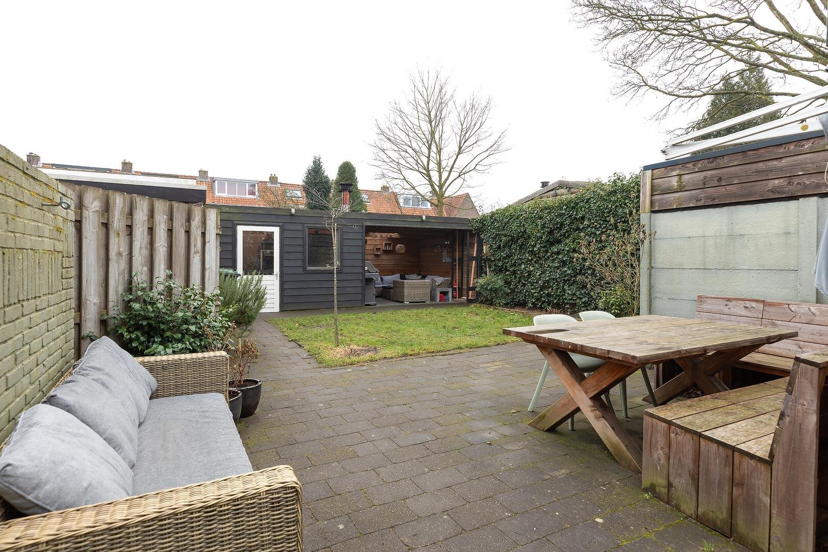 In een rustige straat in het kindvriendelijke Bloemenkwartier in Hilversum Zuid, aan plantsoen gelegen uitgebouwde middenwoning met heerlijke, ruim 15 meter diepe en 8 meter brede achtertuin op het zuiden! Deze zonnige achtertuin beschikt over een achterom, een houten berging en overkapping met houtkachel waar u heerlijk kunt vertoeven.
