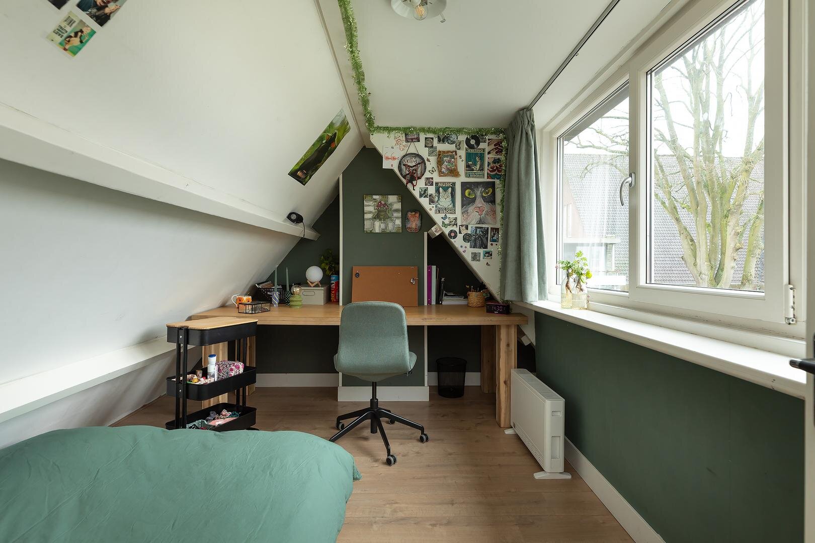 2e verdieping: via vaste trap bereikbaar, overloop met daglicht door dakkapel, knusse 3e slaapkamer met dakkapel over de volle breedte ideaal als kinder- of werkkamer.