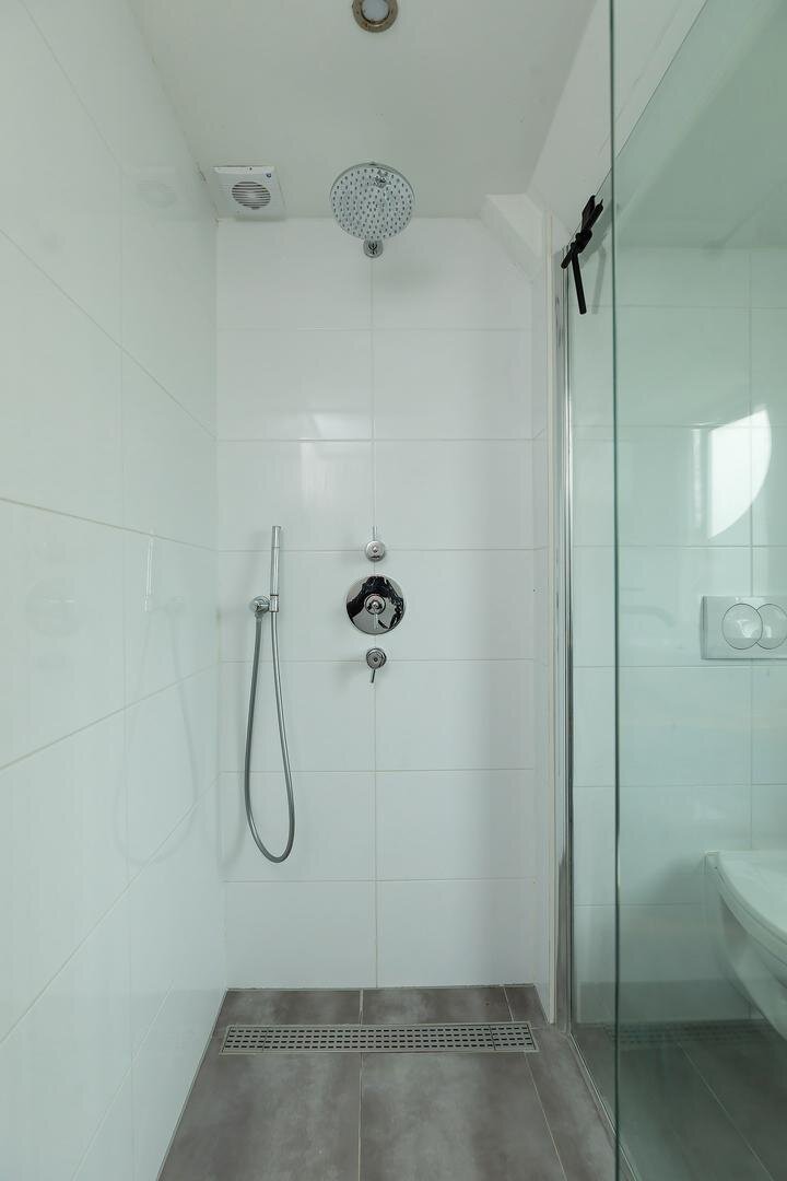 1e verdieping: overloop, moderne badkamer aan de voorzijde met vloerverwarming, inloopdouche, wastafelmeubel en 2e toilet. Ruime slaapkamer met dakkapel aan de achterzijde met schuifkastenwand. 2e slaapkamer aan voorzijde met dakkapel.