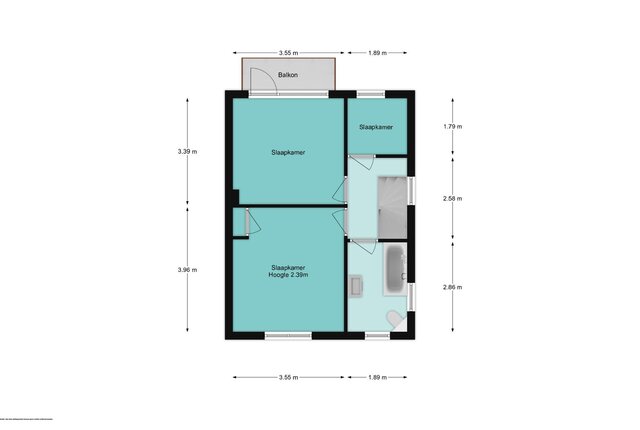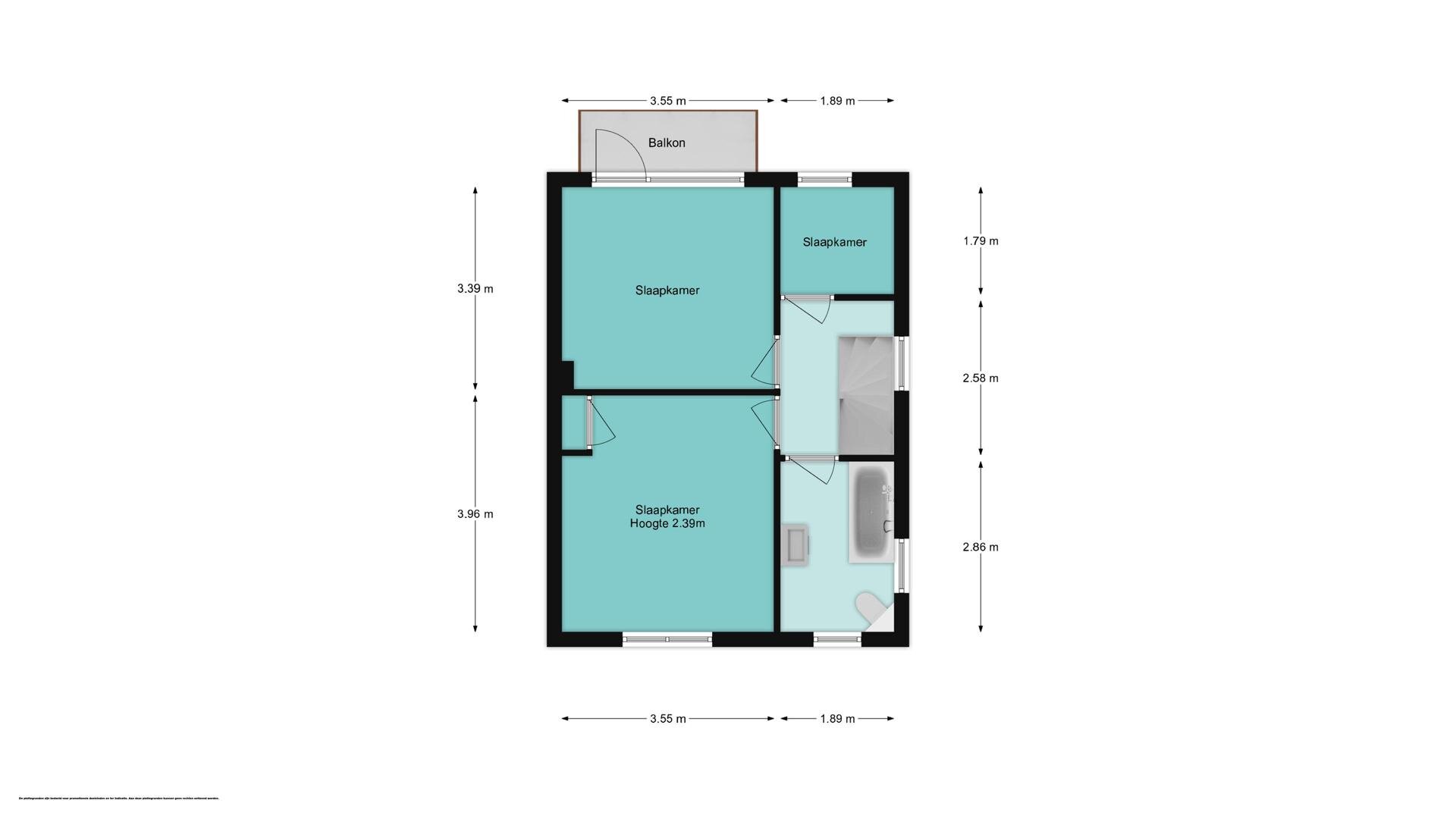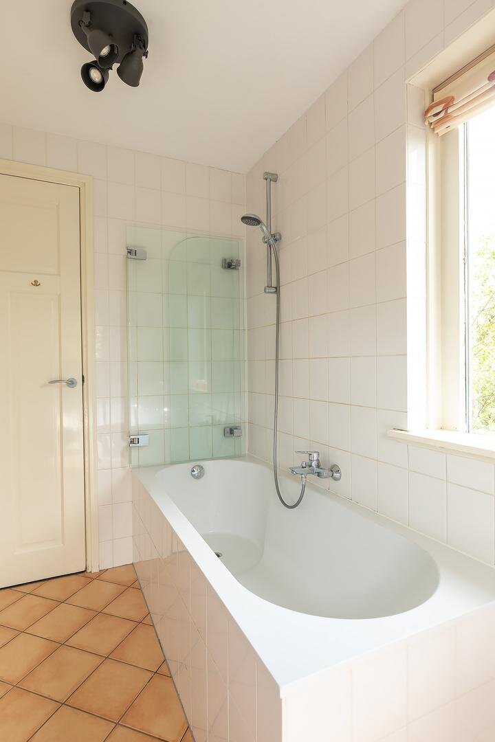 Eerste verdieping: Drie slaapkamers, waarvan één met toegang tot een balkon aan de achterzijde. De derde, kleinere kamer is in gebruik als kleedkamer. De badkamer is uitgerust met een ligbad, toilet en wastafel.