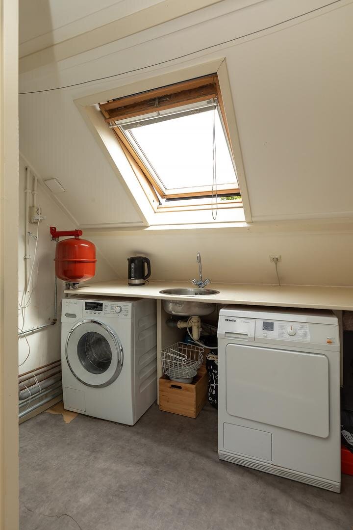 Tweede verdieping: Via een vaste trap bereikt u de volledig geïsoleerde en afgewerkte zolder. Hier vindt u een voorzolder met vaste werkplek, wasruimte met Veluxraam en c.v.-opstelling, een ruime slaapkamer met dakkapel en bergruimte. Ook deze verdieping is voorzien van een houten vloer.