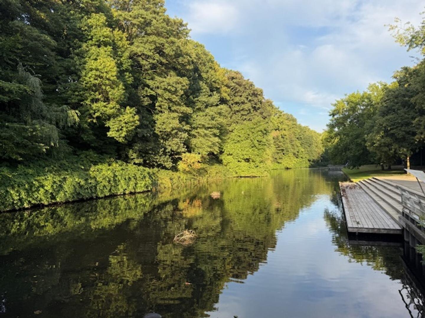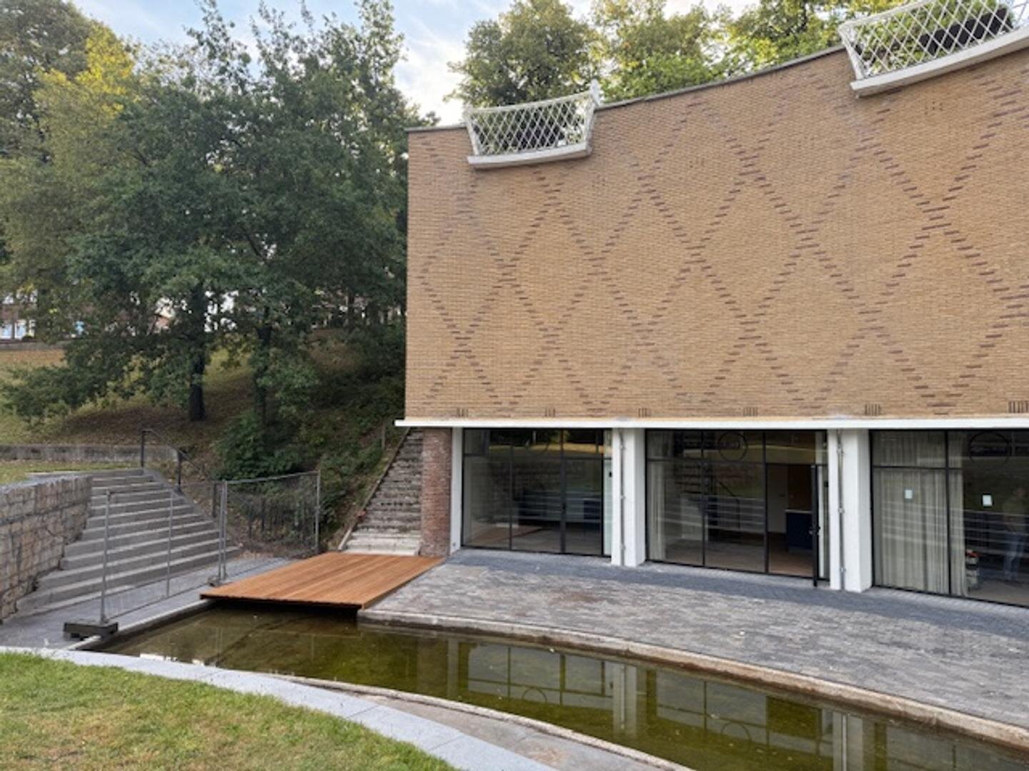 • ruim terras aan het park, met vijver als natuurlijke afscheiding;