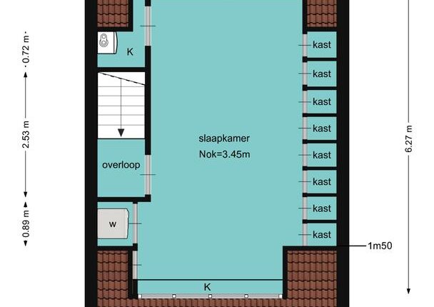 De tweede verdieping heeft een fraaie zolderkamer met twee grote dakkapellen (geplaatst in 2021), een airco-unit, ruime inbouwkasten en wasmachine/droger-aansluting.