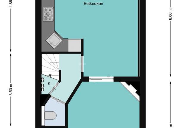 berg / meterkast met moderne groepen en de trapopgang naar de verdieping.
