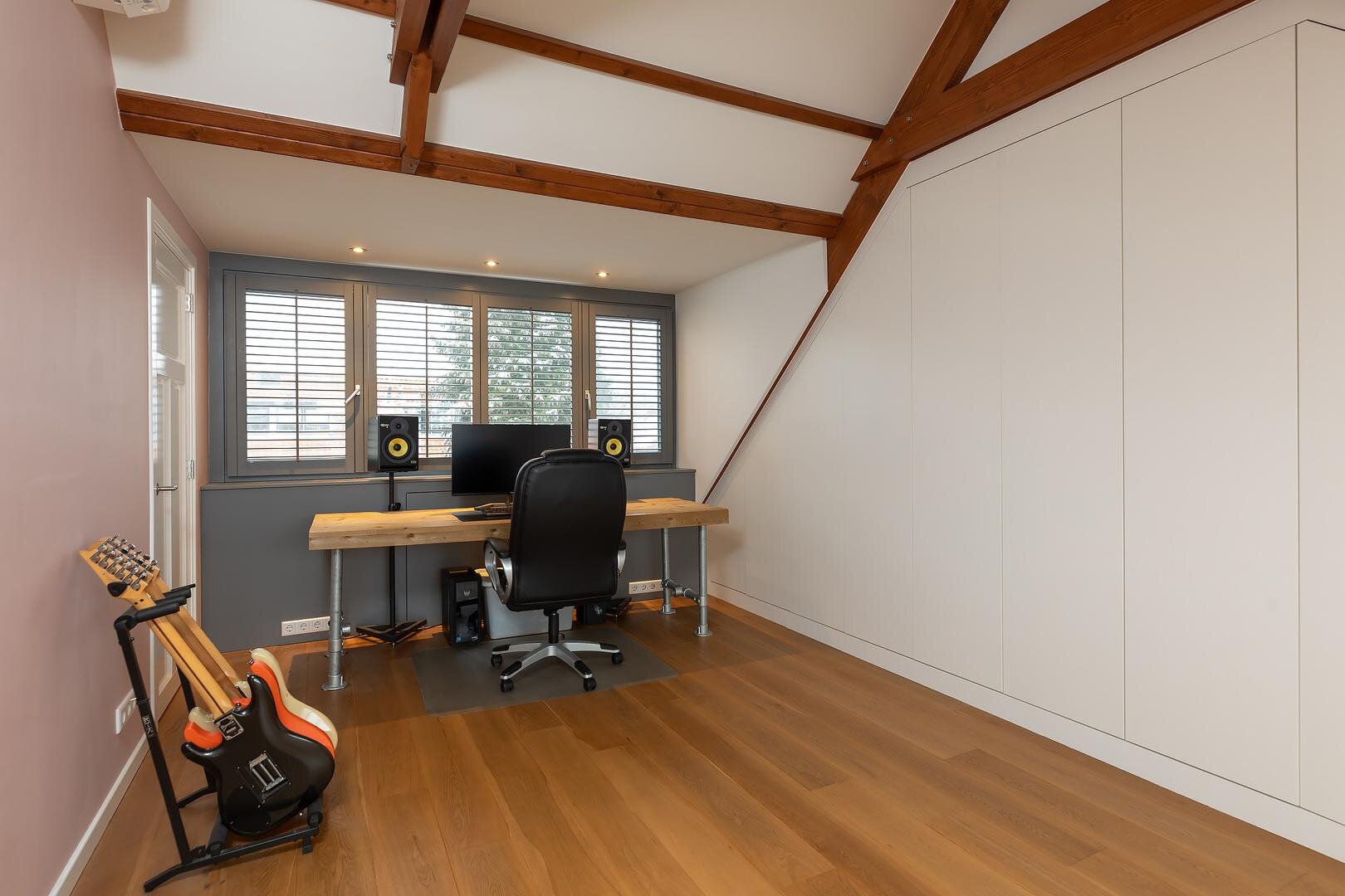 De tweede verdieping heeft een fraaie zolderkamer met twee grote dakkapellen (geplaatst in 2021), een airco-unit, ruime inbouwkasten en wasmachine/droger-aansluting.