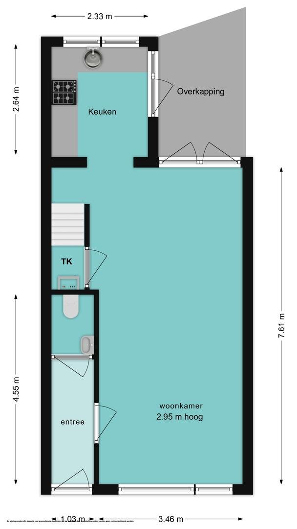 Entree met karakteristieke voordeur voorzien van glas-in-lood, hal met toilet en fonteintje. Vanuit de hal bereikt u de woon-/eetkamer, met aan de voorzijde een groot raam met glas-in-lood bovenlichten en aan de achterzijde openslaande deuren naar de tuin. Dit zorgt voor veel licht en een fijne verbinding met buiten. Vanuit de woonkamer is tevens de bergkast met groepenkast bereikbaar.