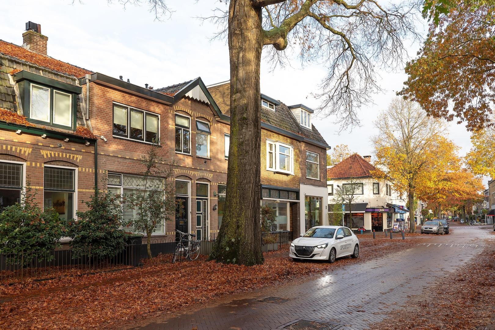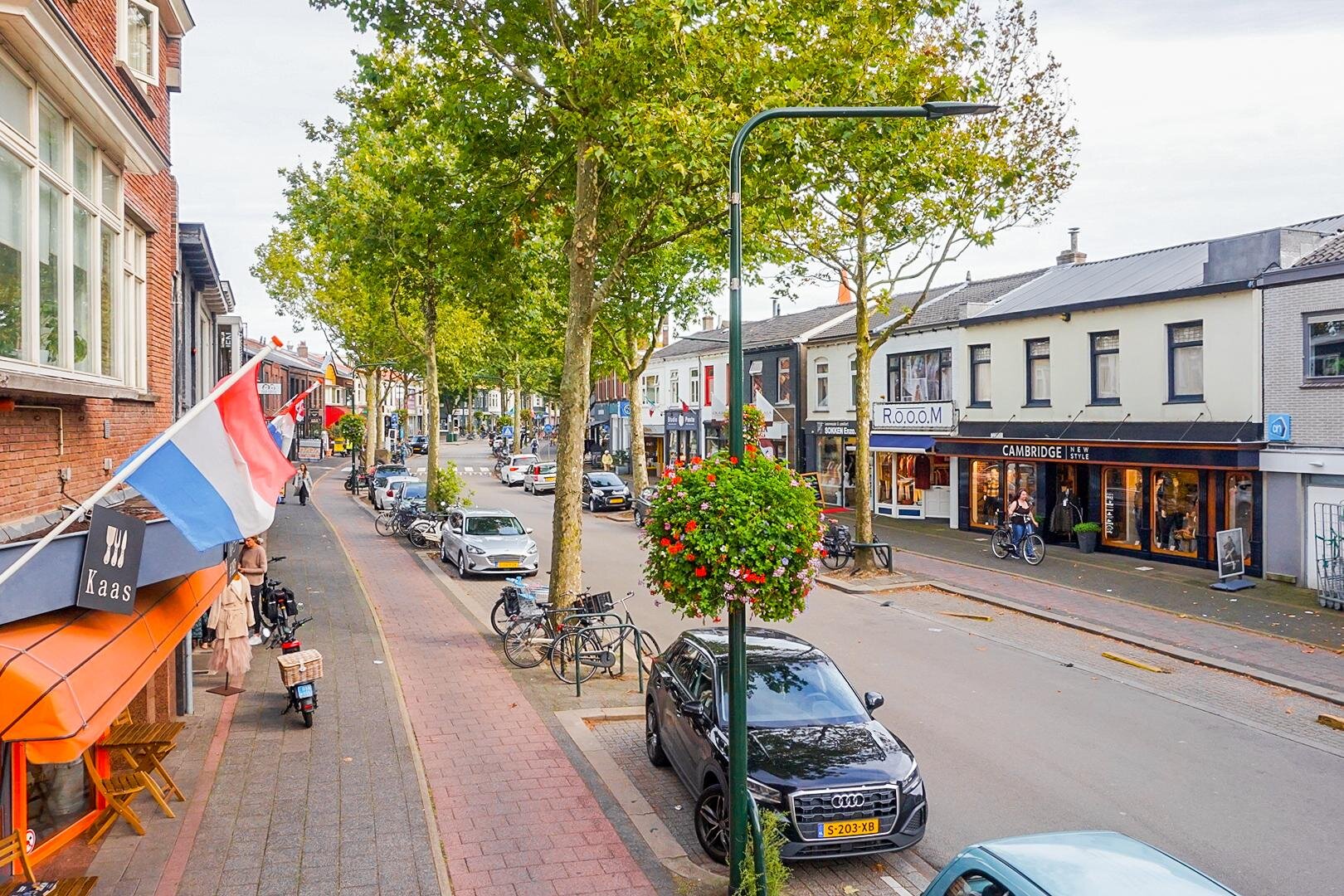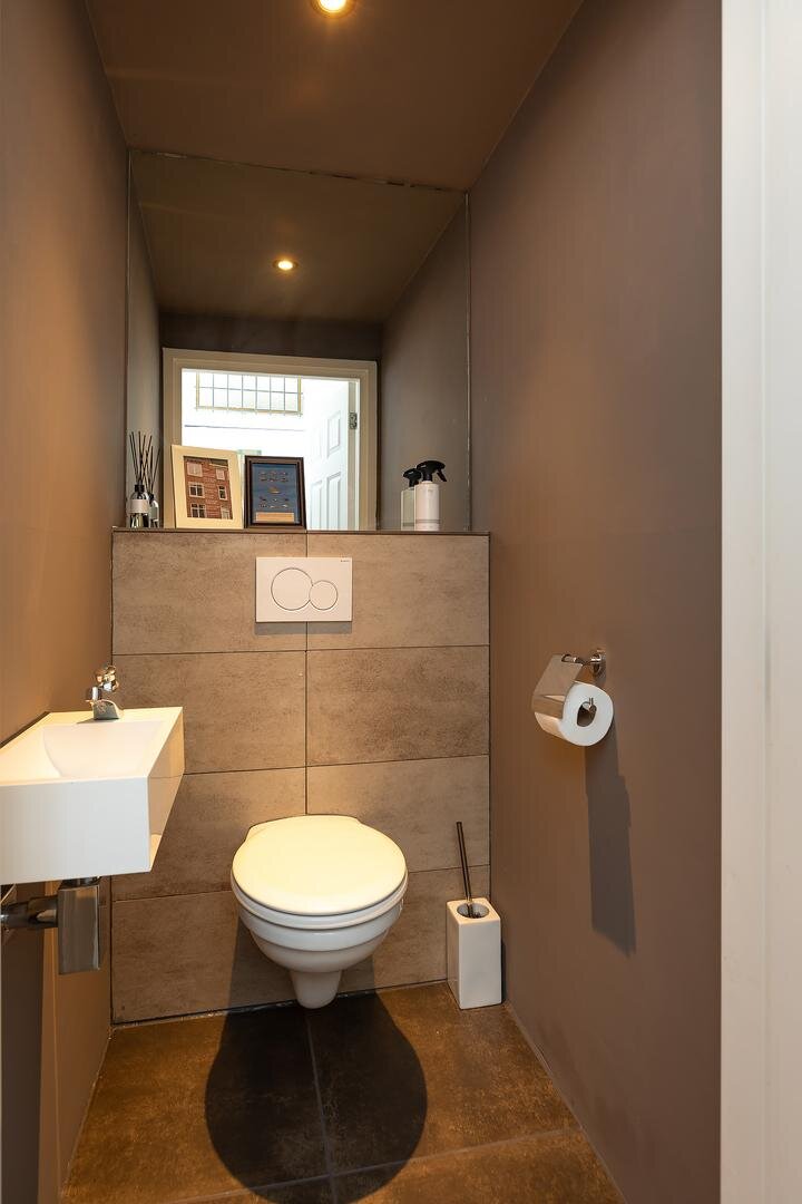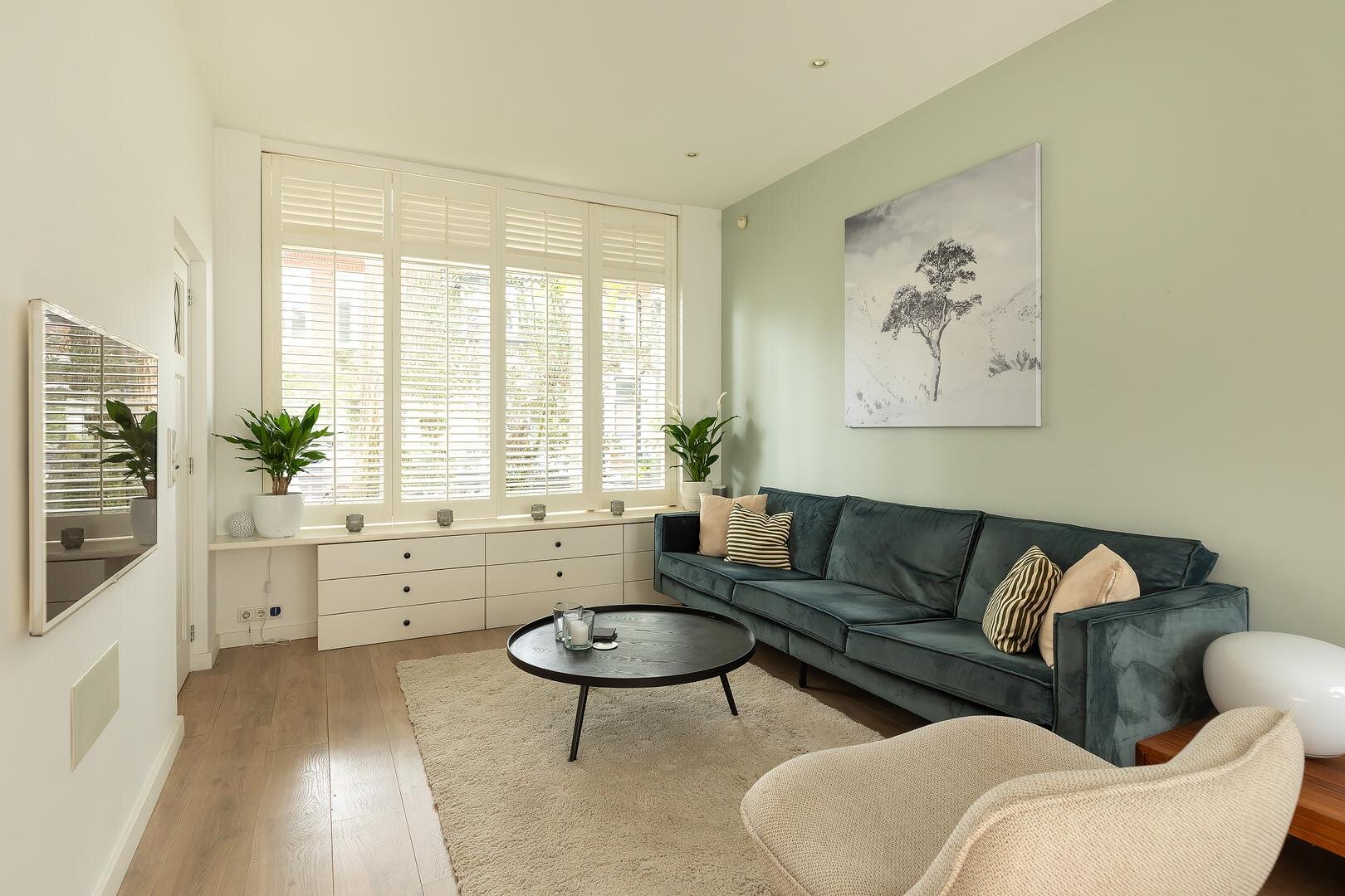Begane grond: entree, hal met recent vernieuwd modern toilet v.v. fontein, zeer aansprekende ruime woon-/eetkamer met hoge plafonds en aan de voorzijde glas in lood en shutters, vaste kast met moderne groepenkast en bergruimte, de openslaande deuren bieden toegang tot de tuin die gelegen is op de avondzon met een fijne afgewerkte berging voorzien van wasmachine- en- drogeraansluiting en een tweede fietsenberging. Aan de achterzijde is de woning uitgebouwd; met open keuken voorzien van kook-/spoeleiland voorzien van bar, vaatwasser, gaskookplaat, afzuigkap en legio lades. De achterwand biedt plaats aan een koelkast, vriezer, combioven/magnetron en een sfeervolle gashaard met afstandsbediening. Onder de keuken is een ruime kelder aanwezig met bergruimte en close in boiler.