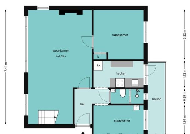 Entree, hal met toegang naar de moderne keuken die van alle gemakken is voorzien en een deur heeft naar het balkon, mooie badkamer met toilet, wastafelmeubel en inloopdouche, 1e slaapkamer met vaste kasten, ruime, zonnige woon-/eetkamer met veel ramen, visgraat gelegde pvc-vloer, houtkachel, toegang tot de 2e grote slaapkamer met vaste kast en trapopgang naar een stahoge (2 meter), geheel afgewerkte en geïsoleerde zolderverdieping met een voorzolder met royale ruimte voor de wasmachine en de droger en veel bergruimte, royale 3e slaapkamer met eveneens veel bergruimte.
