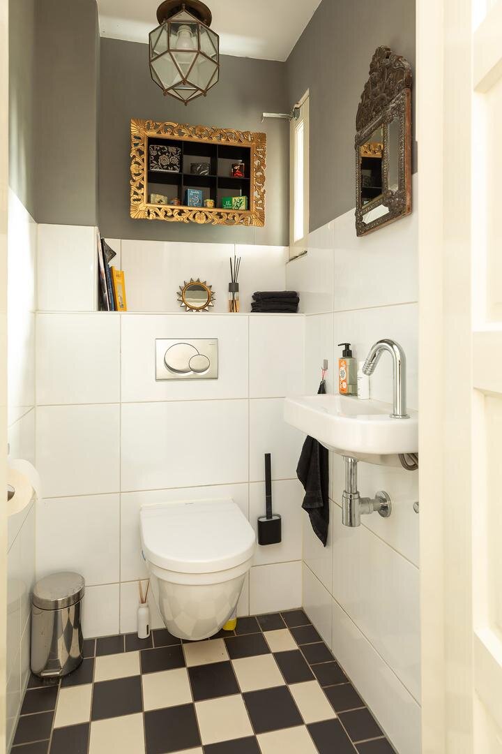 1e verdieping: via bordestrap bereikbare ruime en lichte overloop met separaat toilet met fonteintje. Badkamer gesitueerd aan de achterzijde met ligbad, douche en wastafelmeubel. Verder biedt deze verdieping 2 ruime slaapkamers (circa 14 en 15 m2), beide voorzien van vaste kast, en een kleinere slaapkamer aan de voorzijde welke thans in gebruik is als wasruimte en welke na kleine aanpassing weer kan dienst doen als slaapkamer.