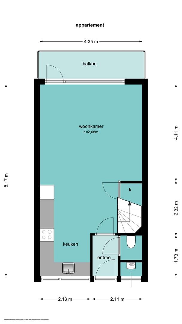 entree, hal, toilet, woon-/eetkamer met laminaatvloer en ruime trapkast alsmede de trapopgang naar de verdieping. Het balkon is vanuit de woonkamer bereikbaar. De moderne open keuken is voorzien van een gaskookplaat, combi-oven en afwasmachine.