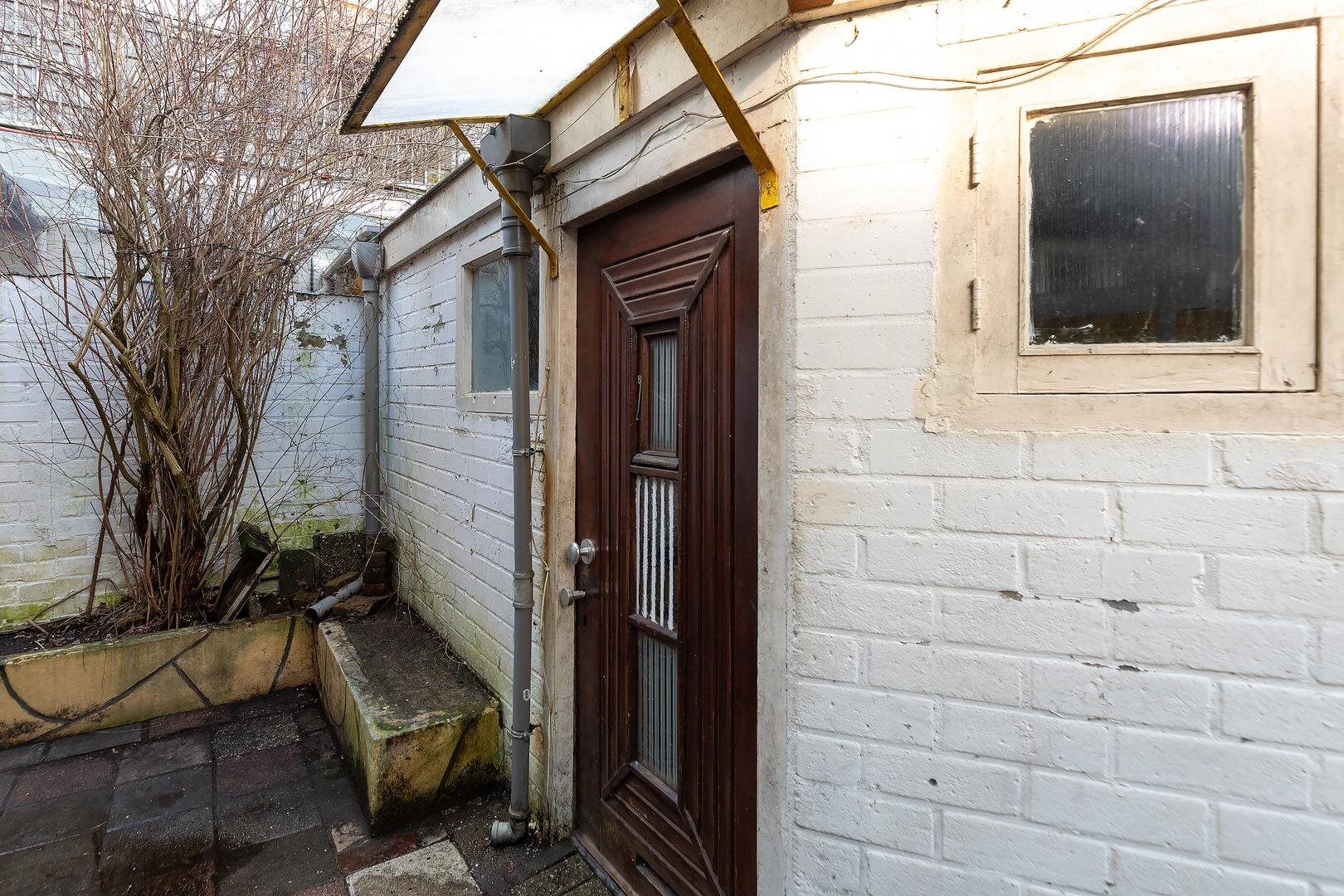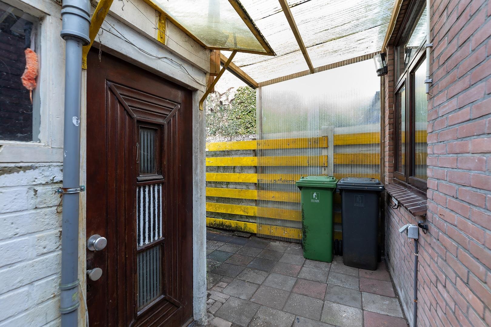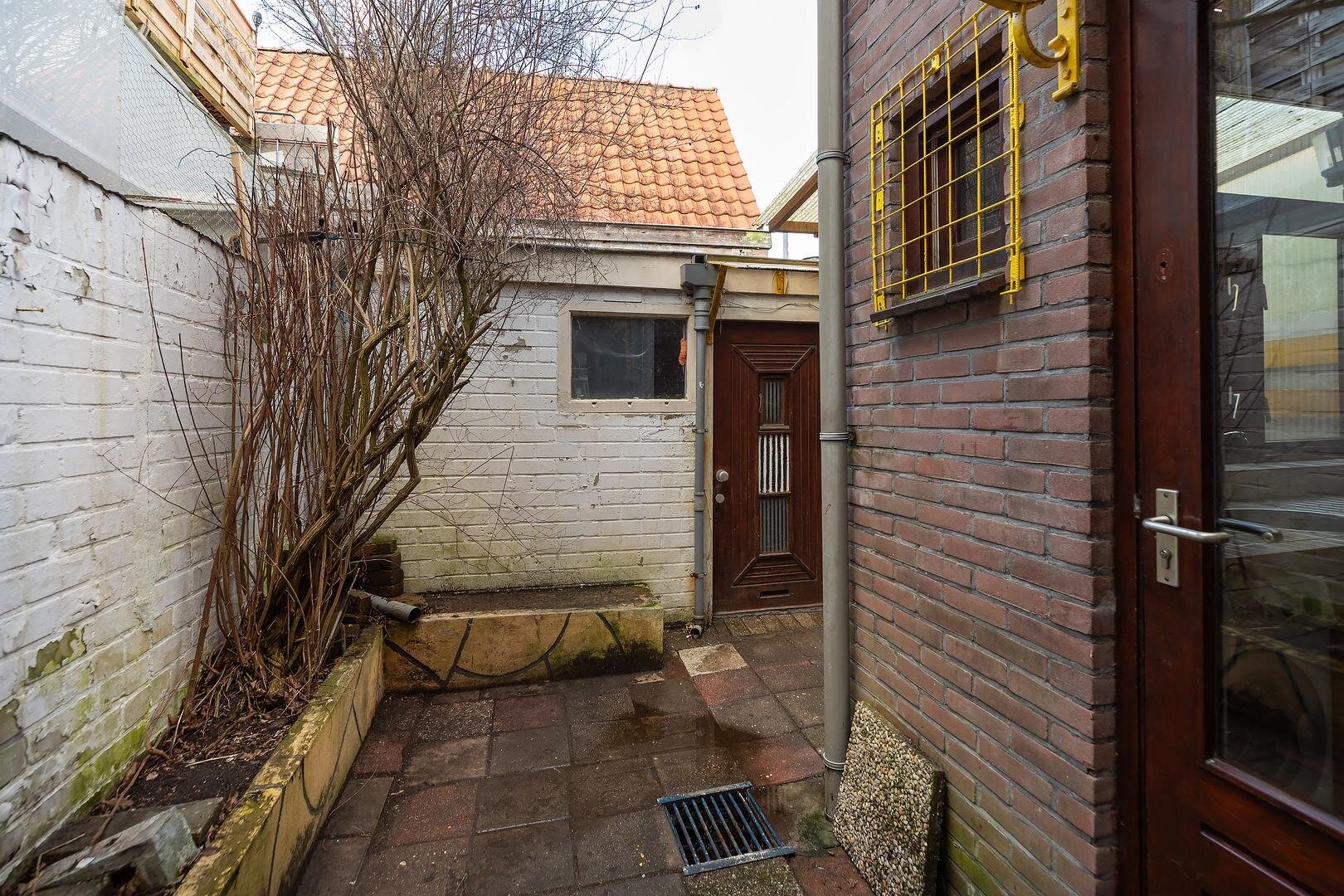 De achtertuin met stenen schuur is besloten en is via een achterom bereikbaar via de 3e Oosterstraat.