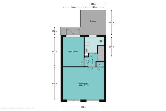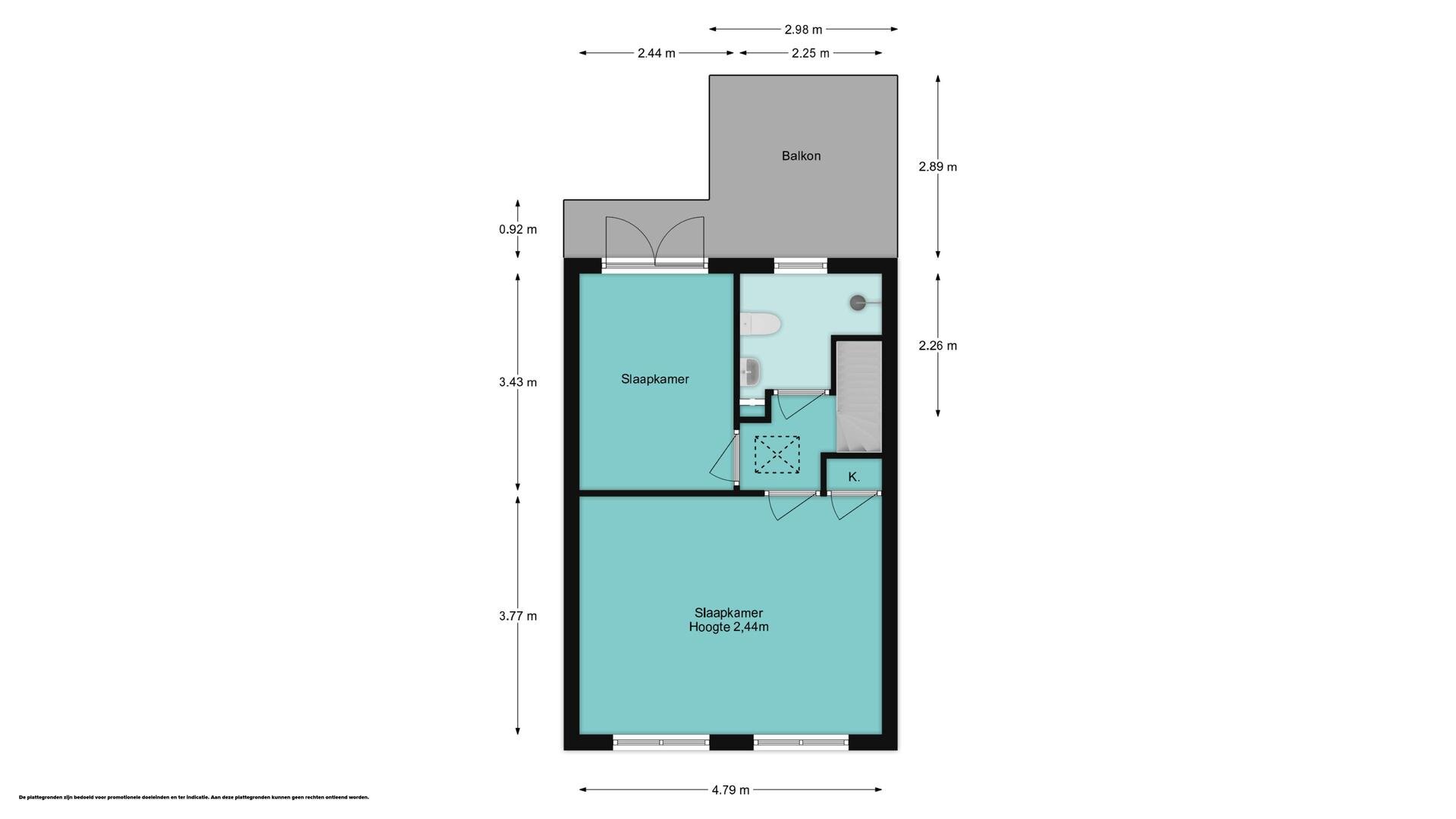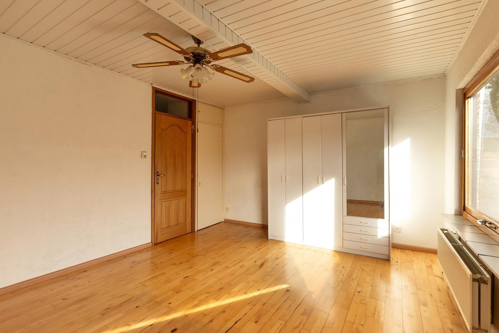 Verdieping: overloop, royale slaapkamer met vaste kast aan de voorzijde. 2e kleinere slaapkamer met openslaande deuren naar het balkon aan de achterzijde.