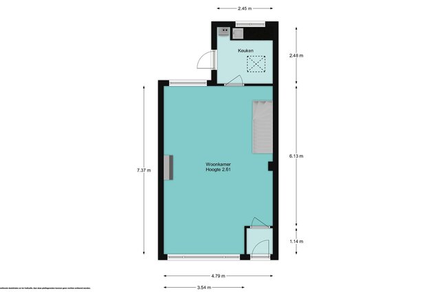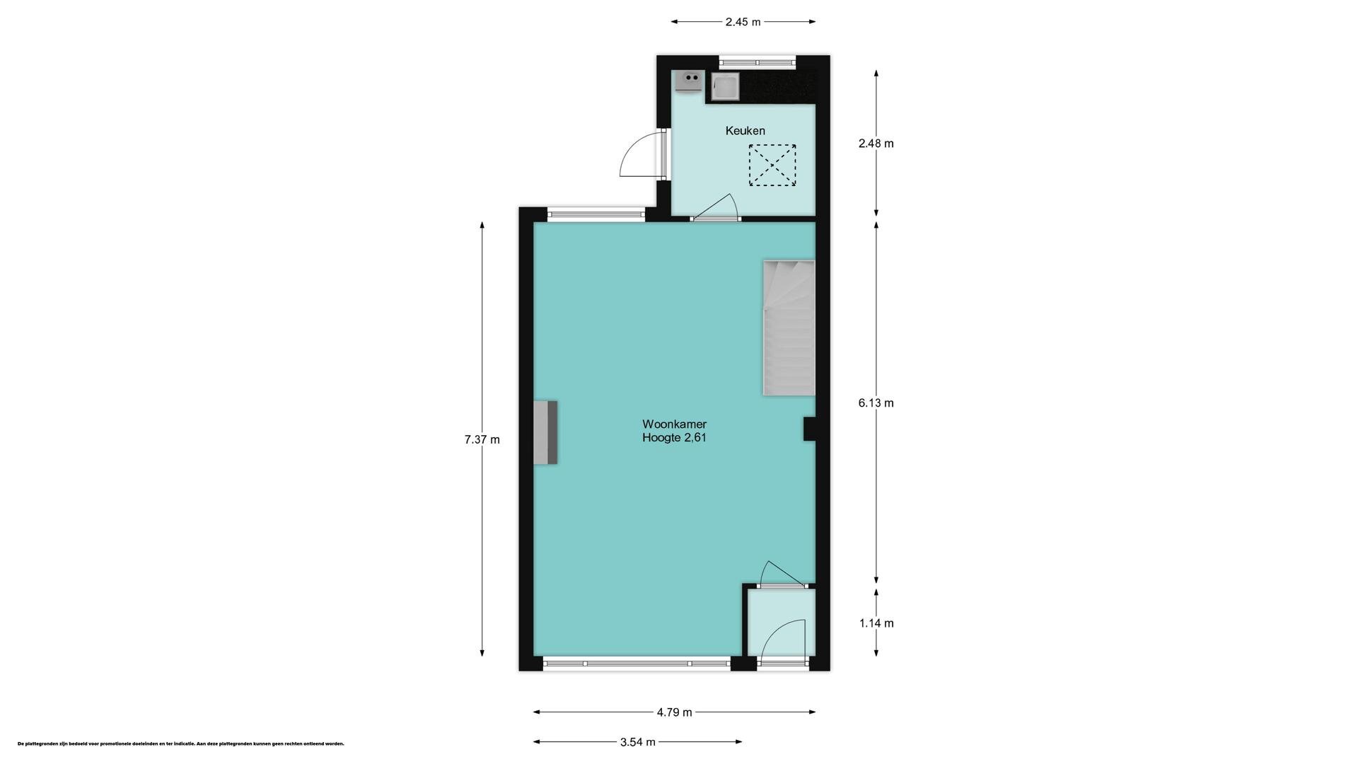 Indeling: entree met garderobe, woonkamer met open haard en houten vloer, trapopgang naar de verdieping.