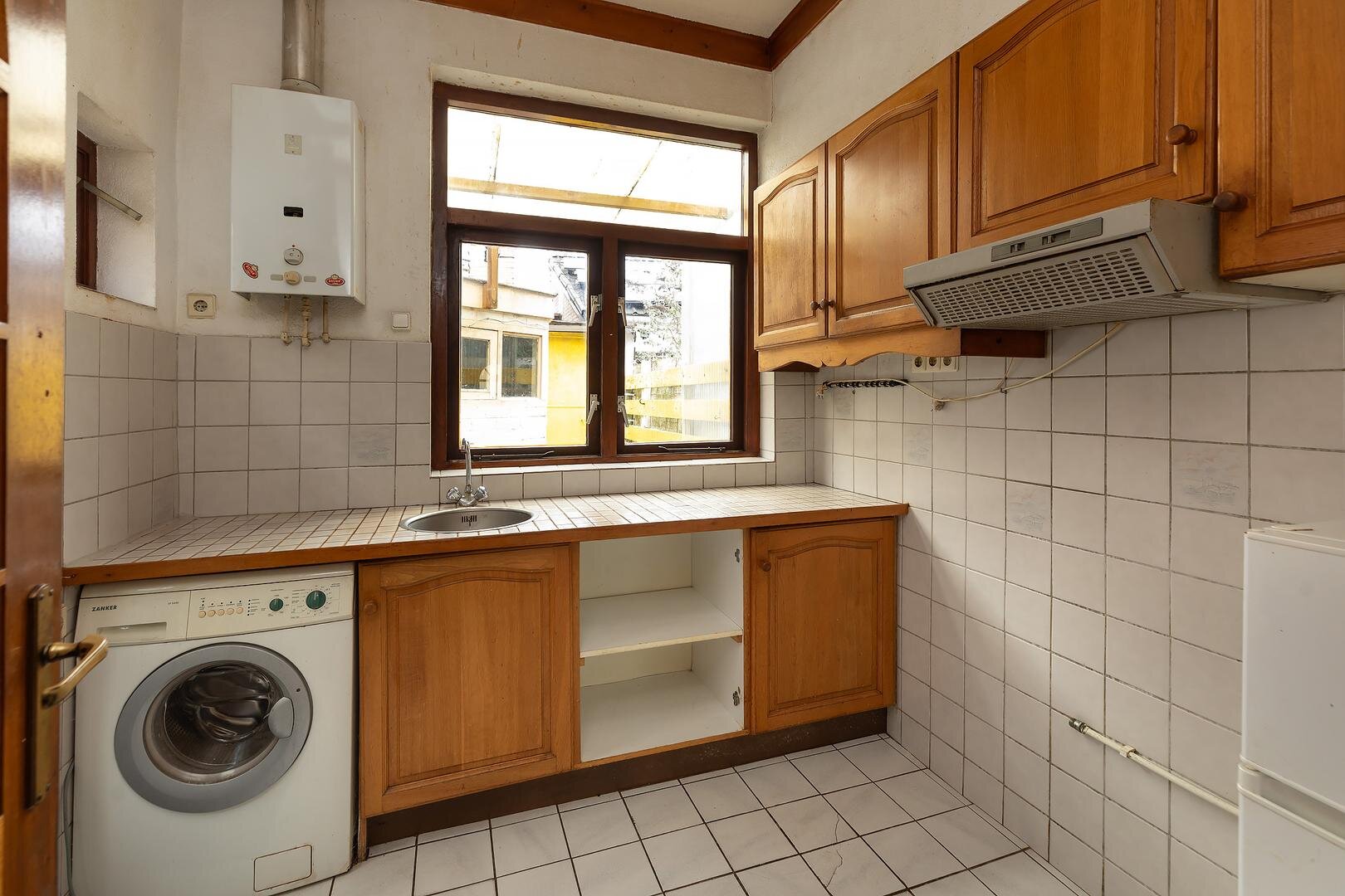 De keuken is eenvoudig uitgevoerd met gaskookplaat, een wasmachine-aansluiting en de c.v.-opstelling. Tevens is vanuit hier toegang tot de kelderruimte.