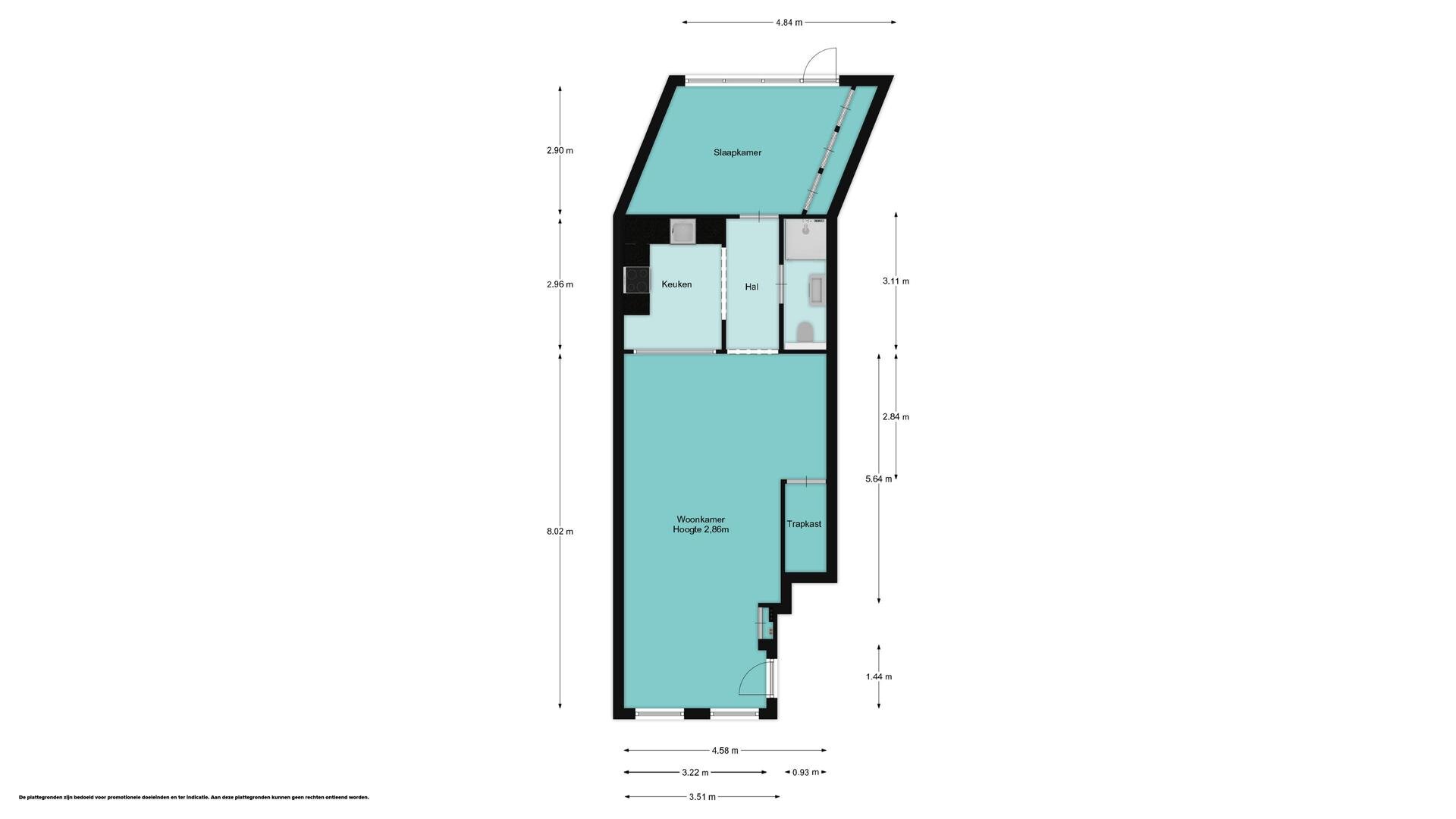- woonoppervlakte: 61m²
