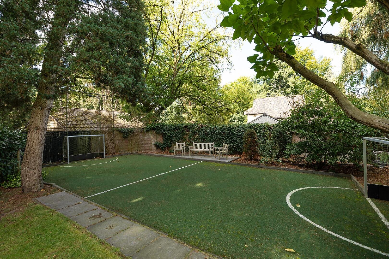 • Sproei-installatie, volwassen bomen met uplights, fraai gazon en privé-hockeyveld