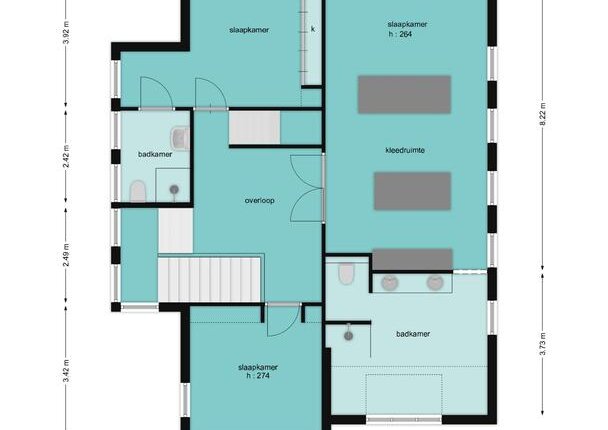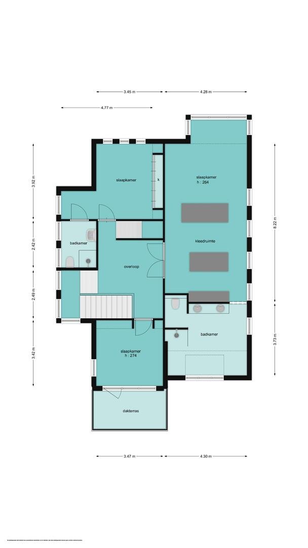 • Masterbedroom als prive slaapvleugel met slaapkamer, kastenkamer en eigen badkamer