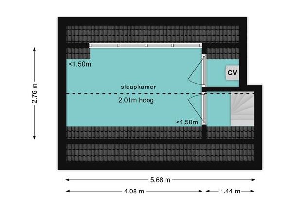 De tweede verdieping is bereikbaar via een vaste trap, 3e slaapkamer met dakkapel en bergruimte achter de schotten.
