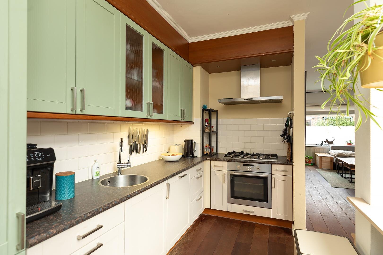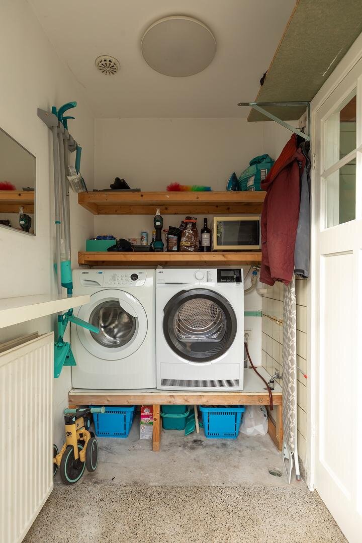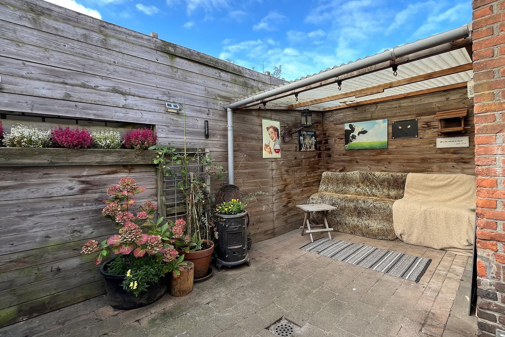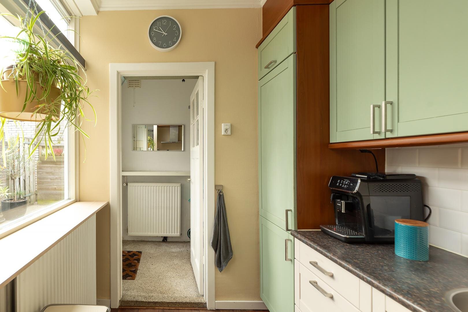 Entree met toegang tot de hal, bergkast onder de trap met meterkast, recent vernieuwd modern toilet, lichte woon-/eetkamer met houten vloerdelen en openslaande deuren naar de patiotuin op het zuiden met achterom. De keuken is open gebroken om lekker mee te kunnen blijven praten met de gasten aan tafel, wel zo gezellig! De keuken heeft recent een opfrisbeurt gehad en is voorzien van diverse inbouwapparatuur zoals een vaatwasser, gaskookplaat, afzuigkap, oven en een koel-/vriescombinatie. Via de keuken bereik je de verwarmde bijkeuken met achterdeur naar de tuin en aansluiting voor wasmachine-/droger.