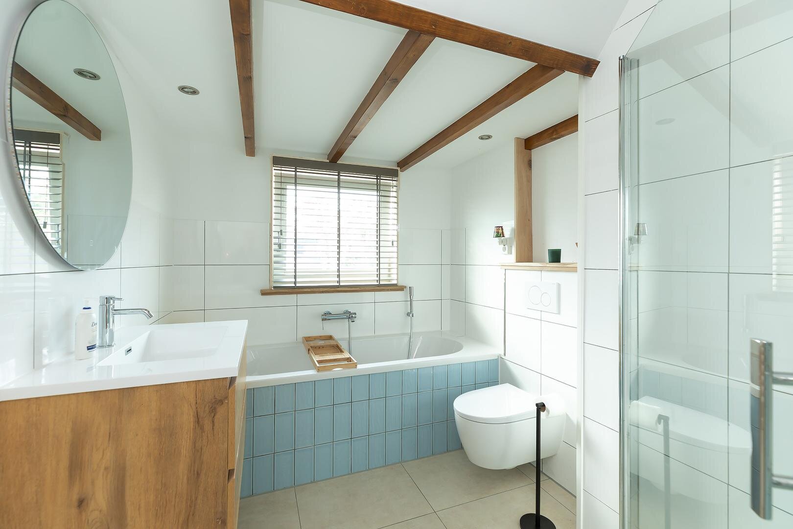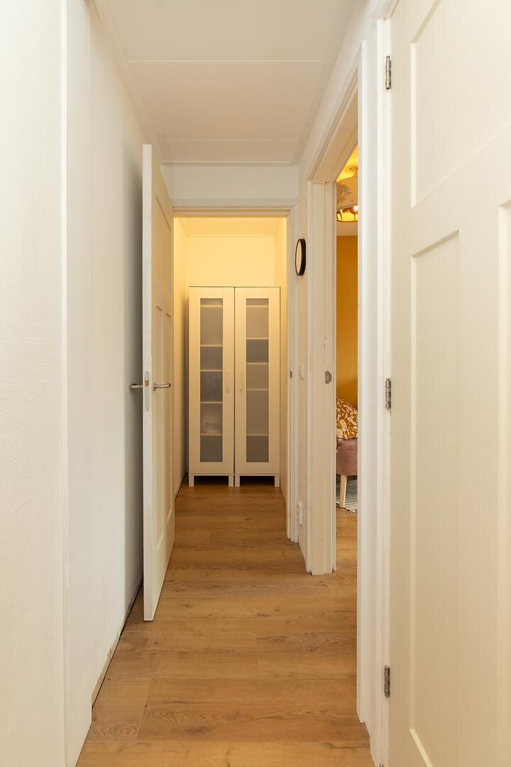 Op de eerste verdieping bevinden zich de ouderslaapkamer aan de voorzijde, een tweede goed bemeten slaapkamer aan de achterzijde, een berging en de recent vernieuwde sfeervolle badkamer met inloopdouche, ligbad, hangend toilet en wastafelmeubel.