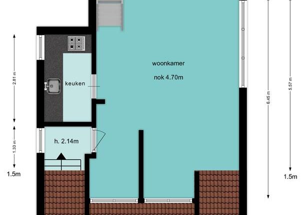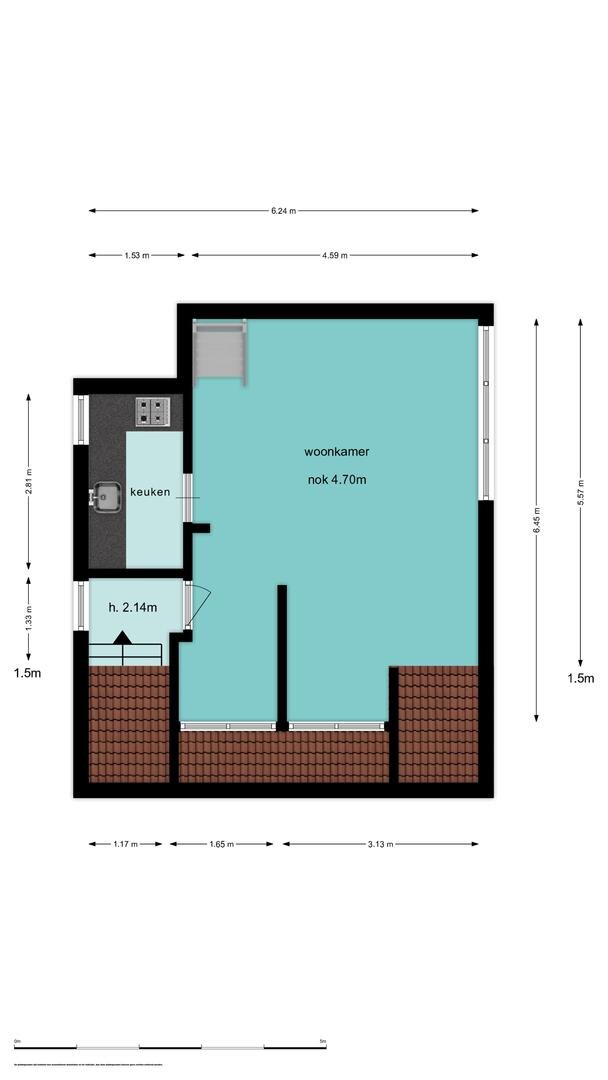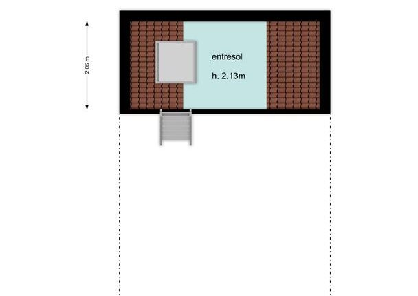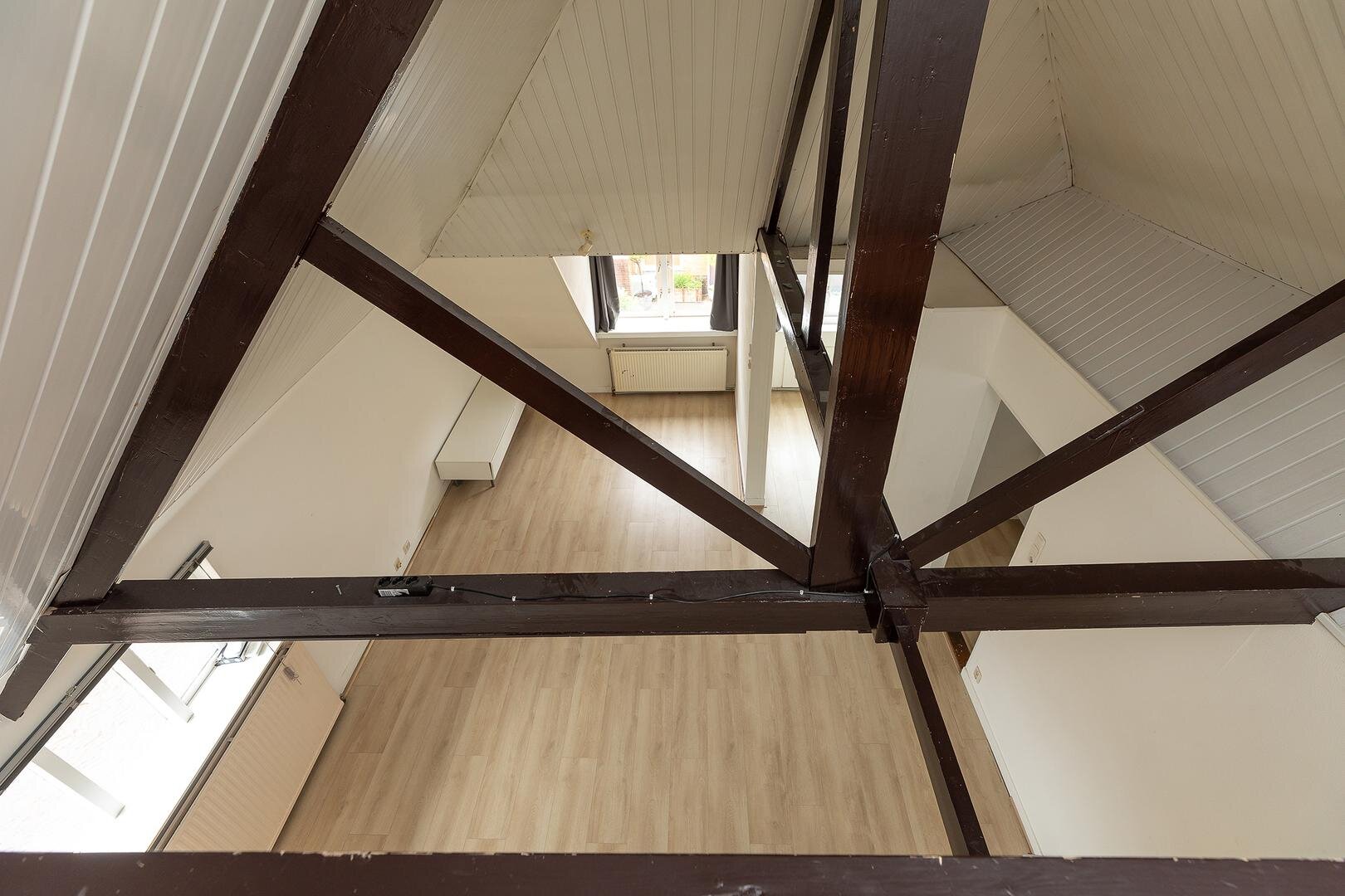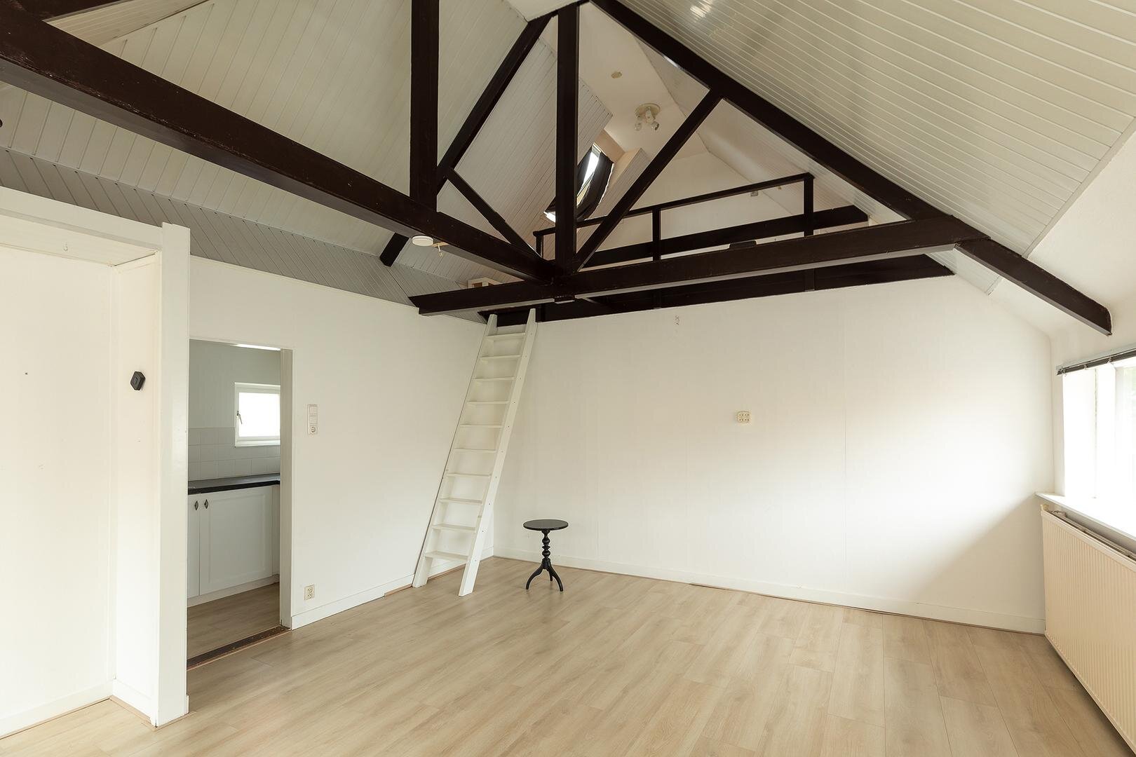 1e verdieping: overloop, ruime woon- /eetkamer met open keuken en trap naar een entresol.