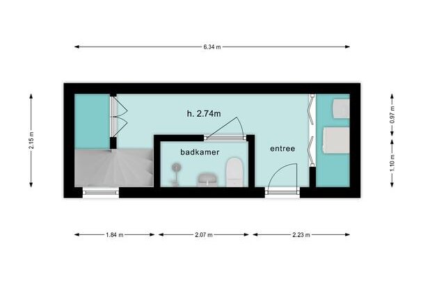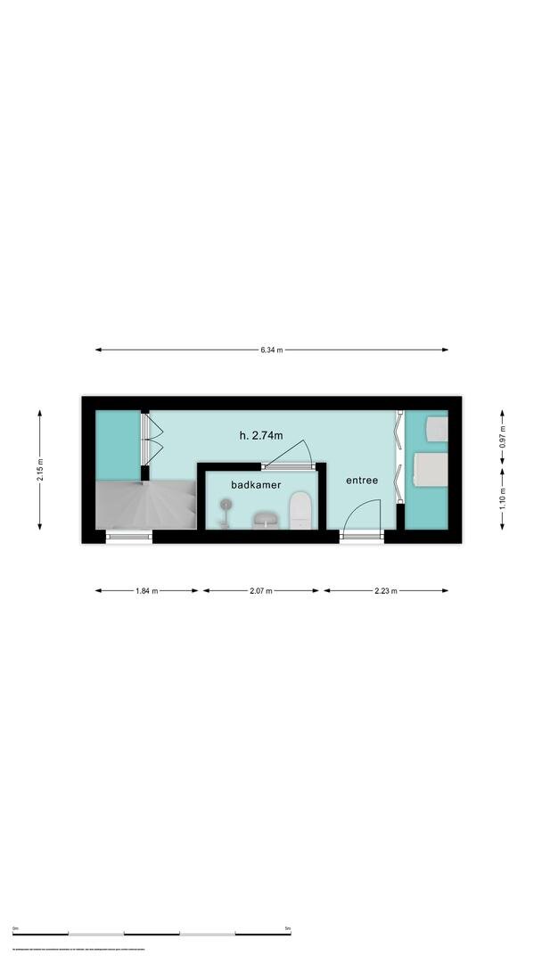 Begane grond: eigen entree met C.V-ketel, meterkast, badkamer met douche, wastafel en toilet en trapopgang naar de 1e verdieping