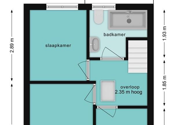 Op de eerste verdieping kom je uit op een ruime overloop met toegang tot drie slaapkamers en de badkamer. Hier bevindt zich ook het luik naar de vliering, voor extra bergruimte. De badkamer is voorzien van een ligbad, wastafelmeubel en toilet.