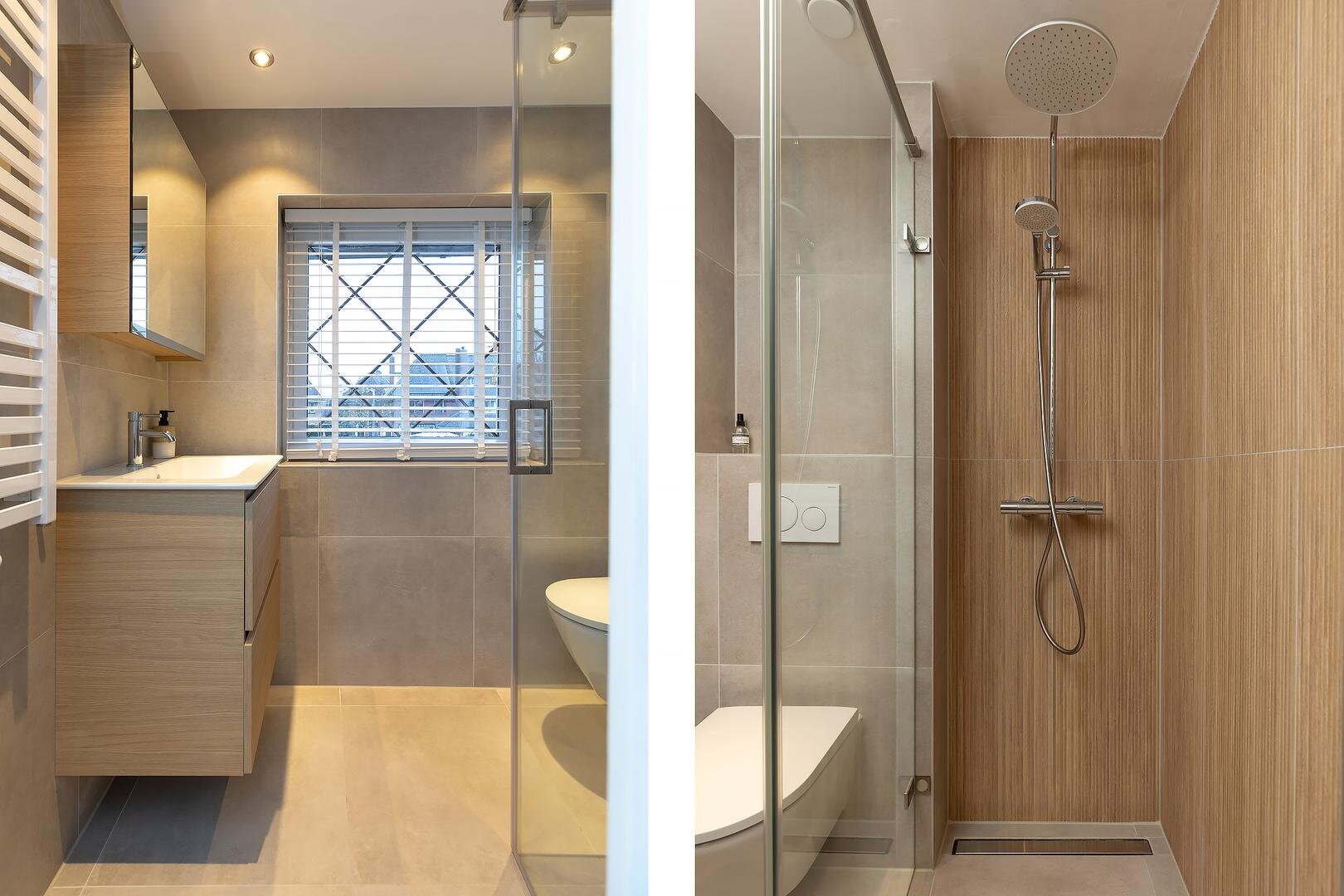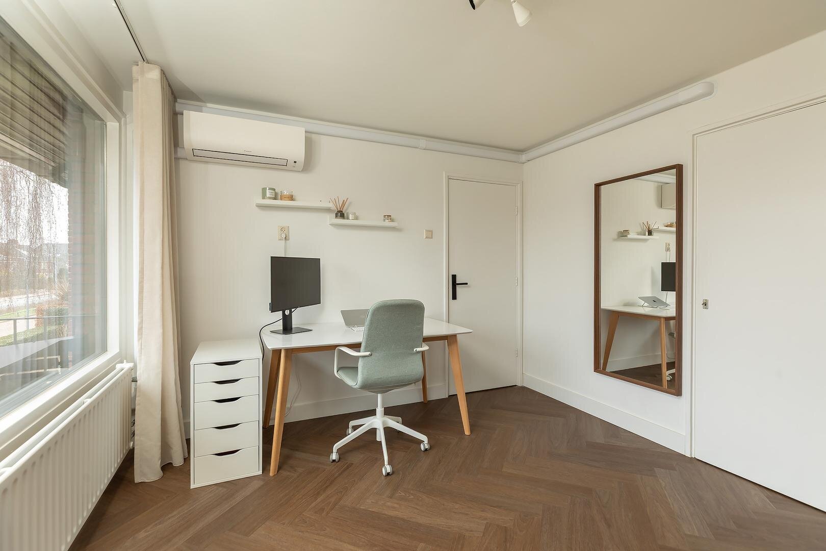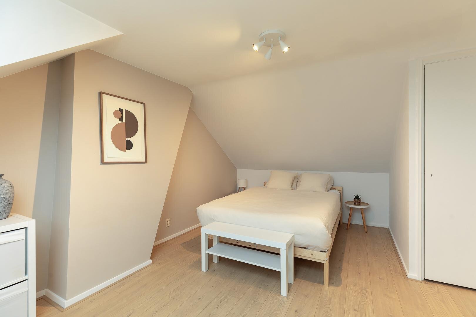 Overloop met grote bergkast, 1e ruime slaapkamer (voorheen 2 kamers) met airconditioning en inbouwkast, 2e goed bemeten slaapkamer met airconditioning en deur naar het overdekte balkon aan de voorzijde, nieuwe badkamer met inloopdouche, hangend toilet en wastafelmeubel. De gehele etage is voorzien van een PVC visgraat vloer.
