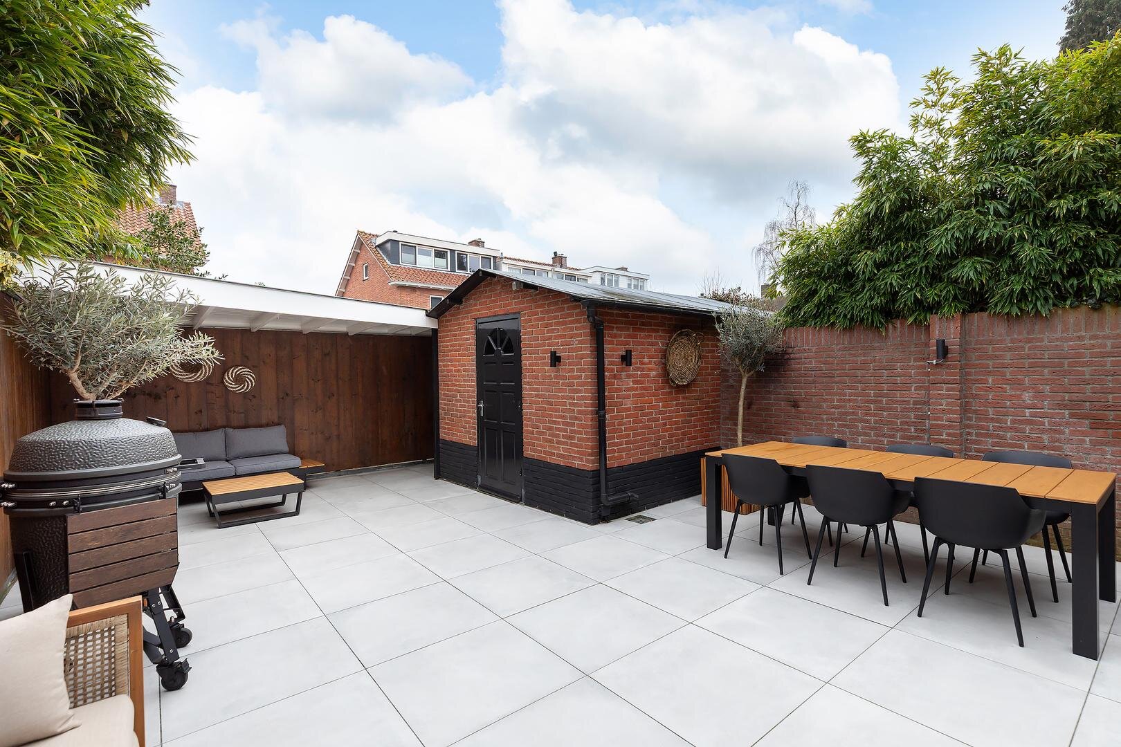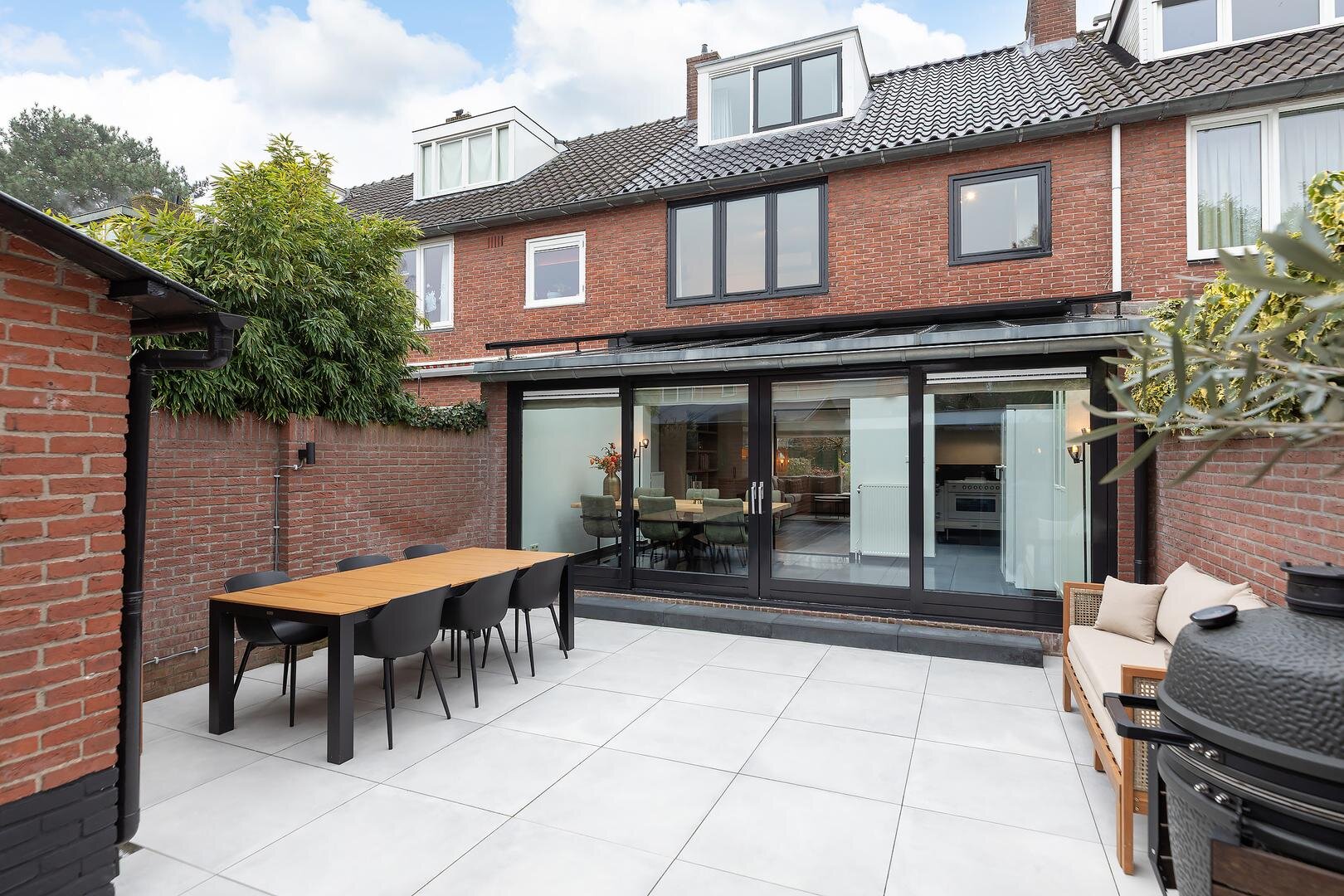 Middels een schuifdeur aan de achterzijde toegang tot de zonnige achtertuin welke in 2025 compleet is vernieuwd inclusief tuinverlichting. De tuin is voorzien van nette bestrating, een stenen schuur met electra, een gezellige veranda en een achterom.