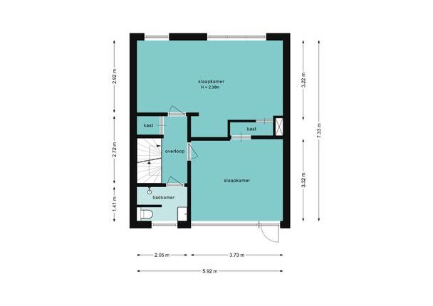 Overloop met voorzolder voorzien van bergruimte en wasmachine-/drogeraansluiting, 3e ruim bemeten slaapkamer met een dakkapel, wastafel en vaste bergkast. De zolder is deels voorzien van dakisolatie en geheel van dubbele beglazing.