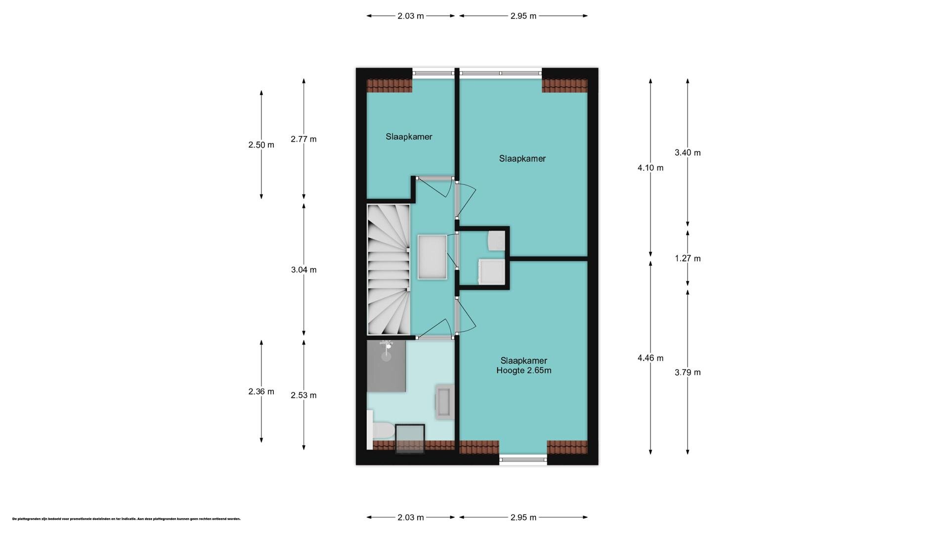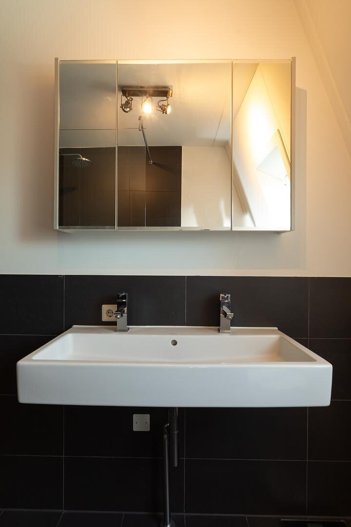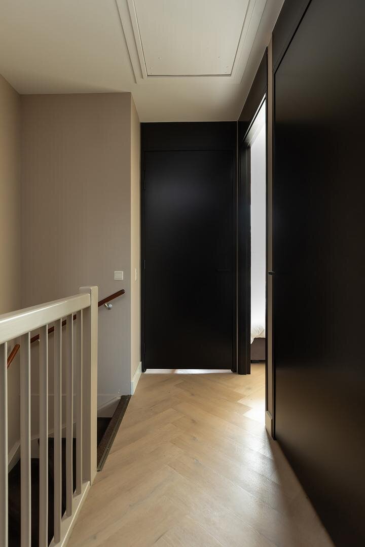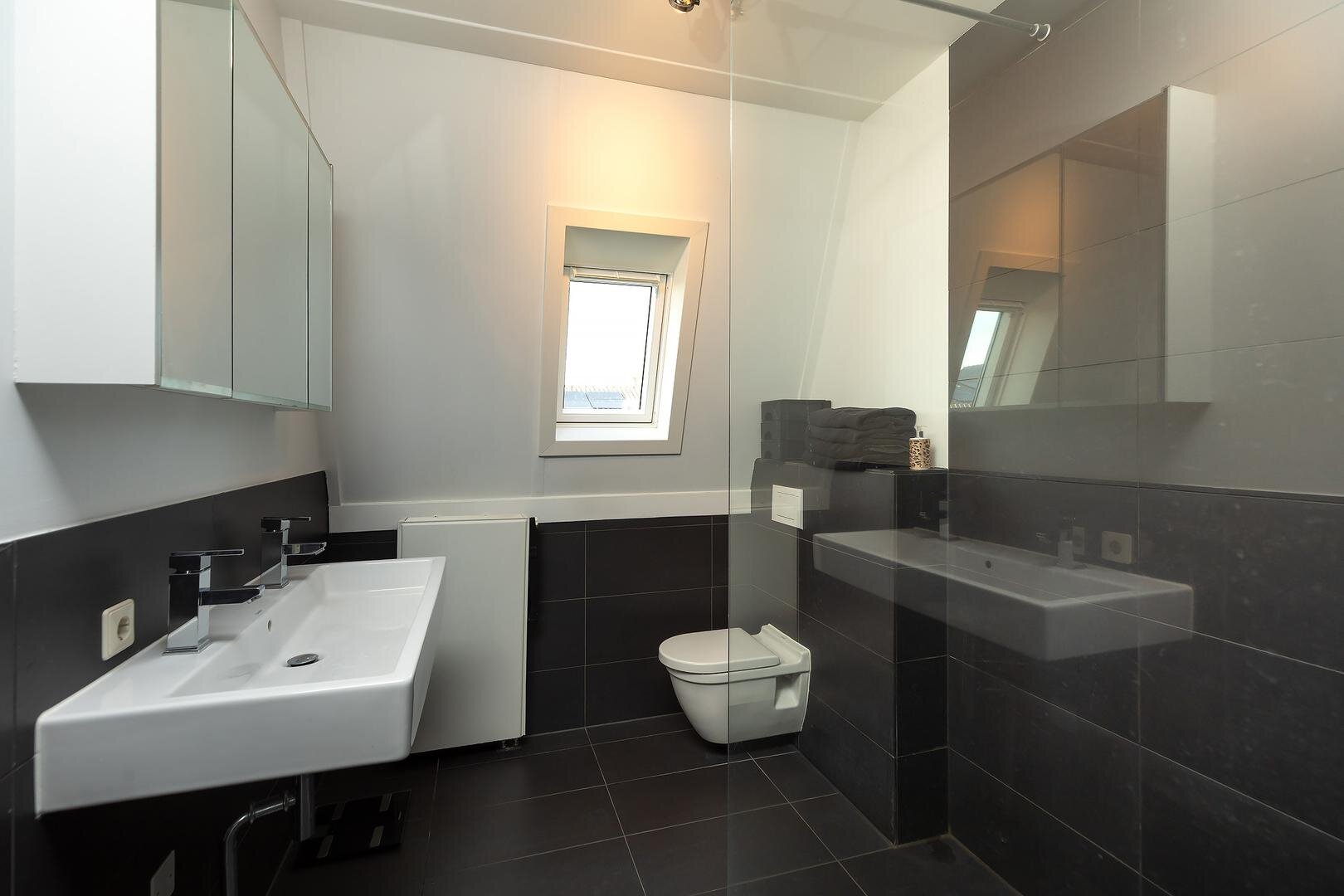 overloop, 3 in grootte variërende slaapkamers, moderne badkamer met douche, 2de toilet en dubbel badkamermeubel, een technische ruimte voor het mechanische ventilatiesysteem en ruimte voor wasmachine en droger. Via de vlizotrap bereikbare ruime bergvliering.